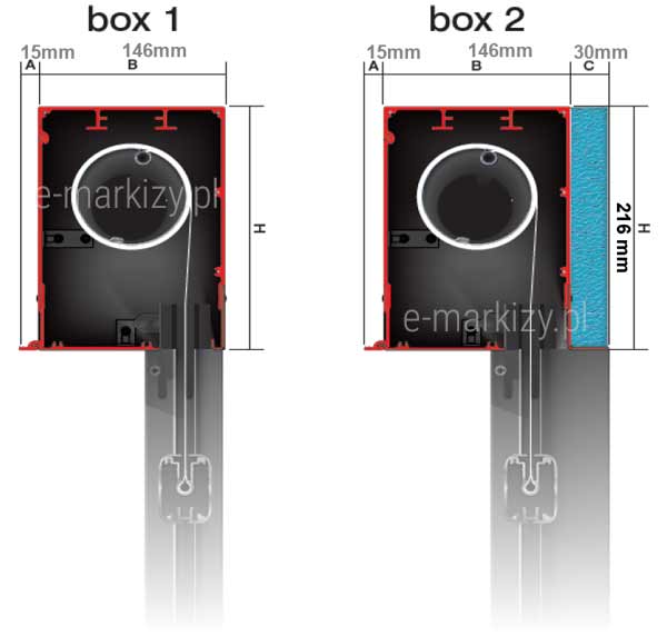 – Wersja box 2 posiada 30mm dodatkowego miejsca na styrodur bądź inny rodzaj ocieplenia