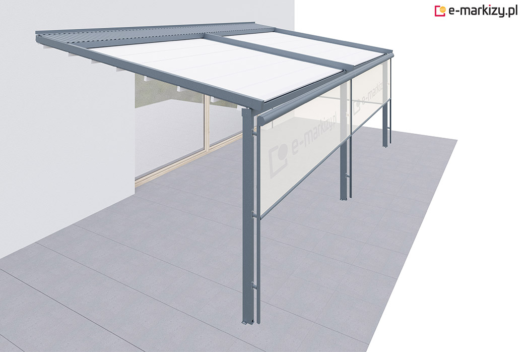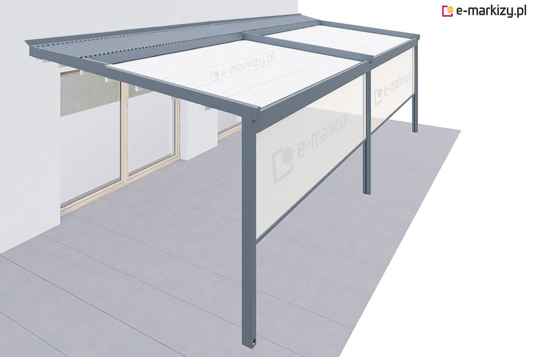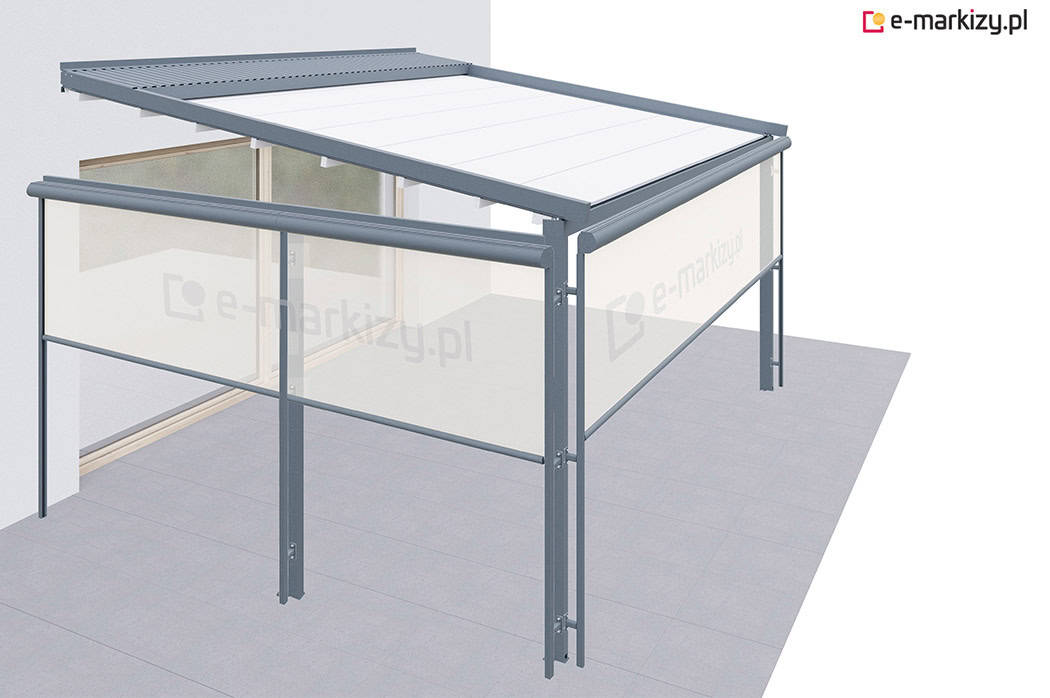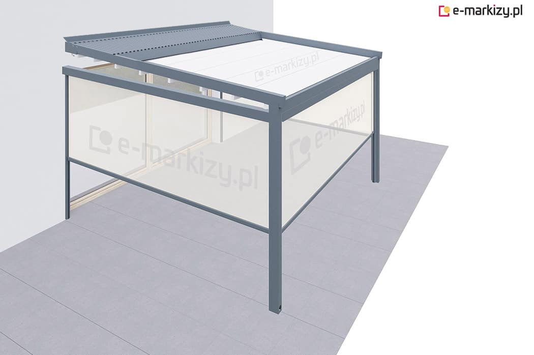 Pergola tarasowa z osłoną typu refleksol ziip z przodu i na boku konstrukcji