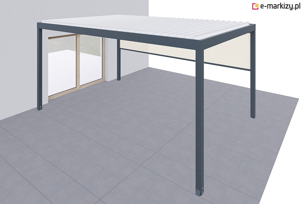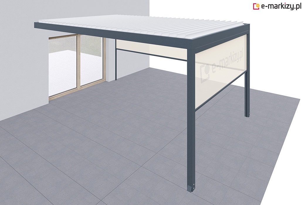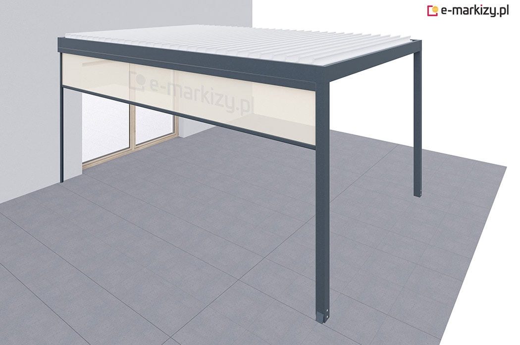Pergola tarasowa z osłoną typu refleksol z przodu i z boku konstrukcji