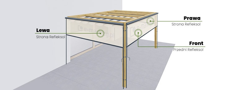 Zależnie od szerokości oraz wysięgu pergoli, posiada ona inną ilość podpór oraz refleksoli