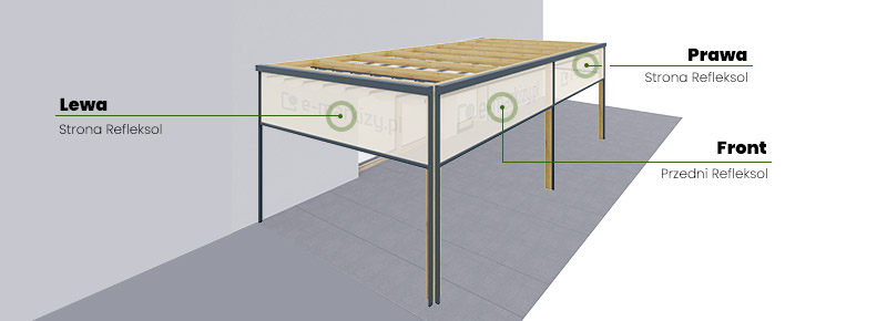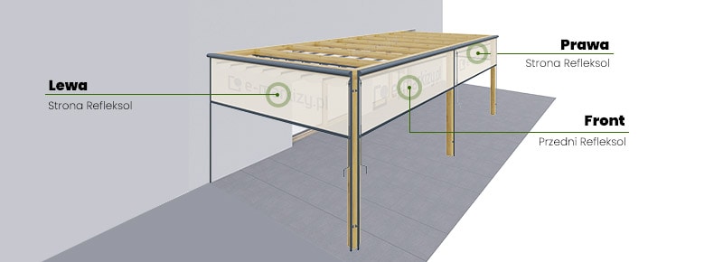 Zależnie od szerokości pergoli, posiada ona inną ilość podpór oraz refleksoli