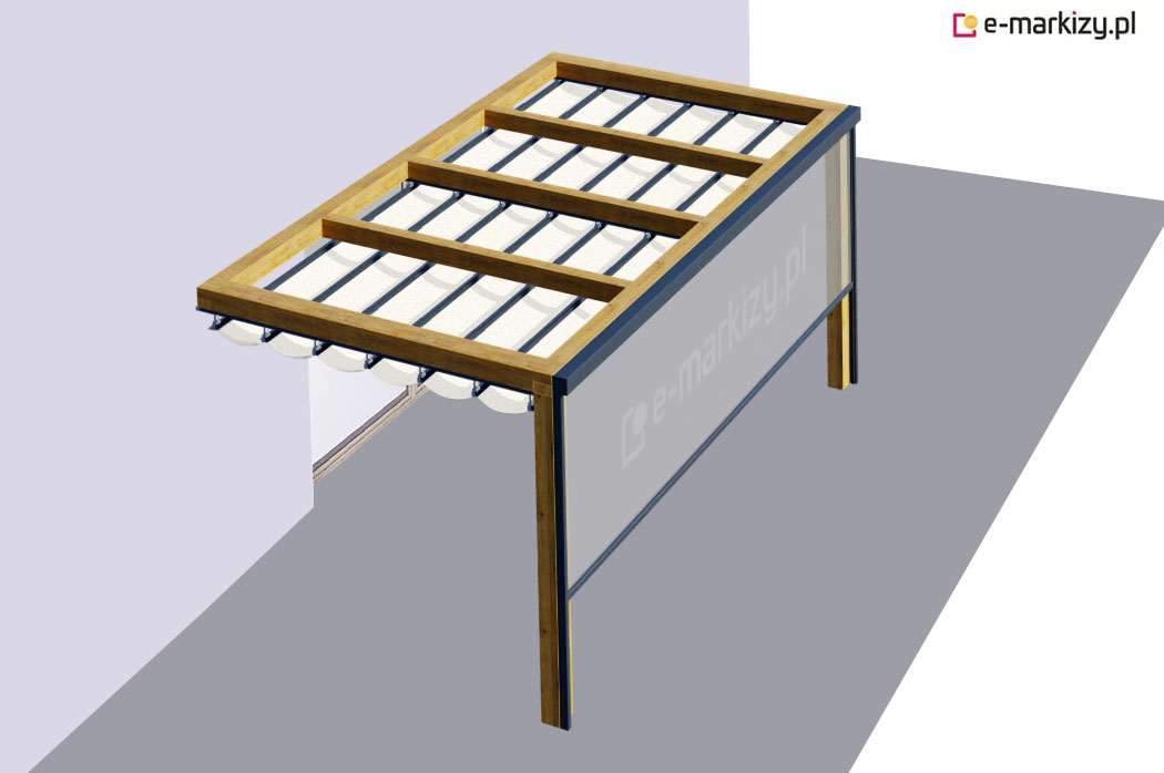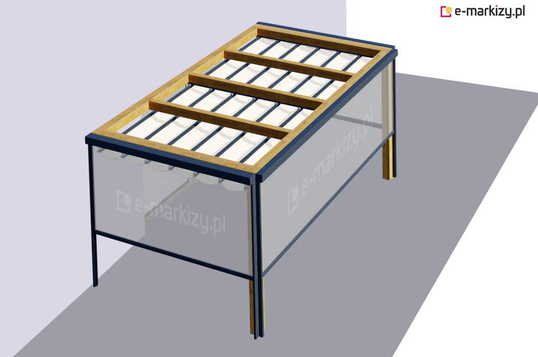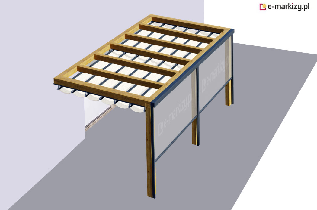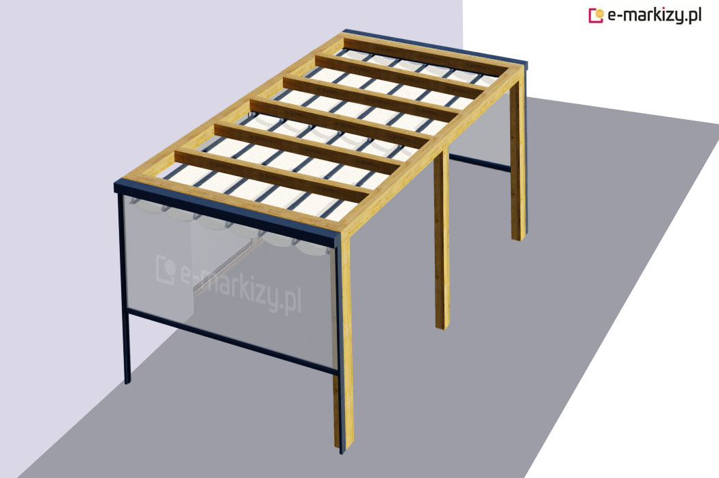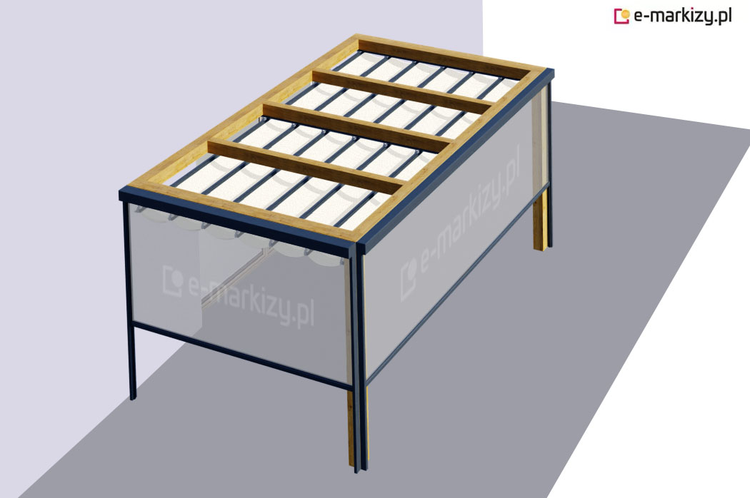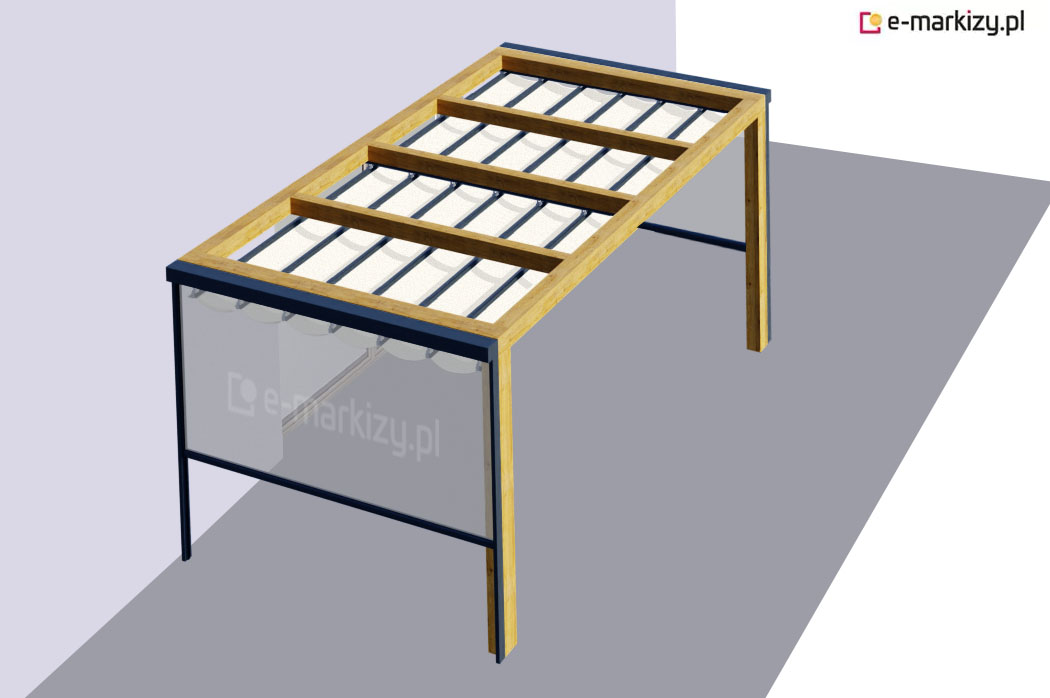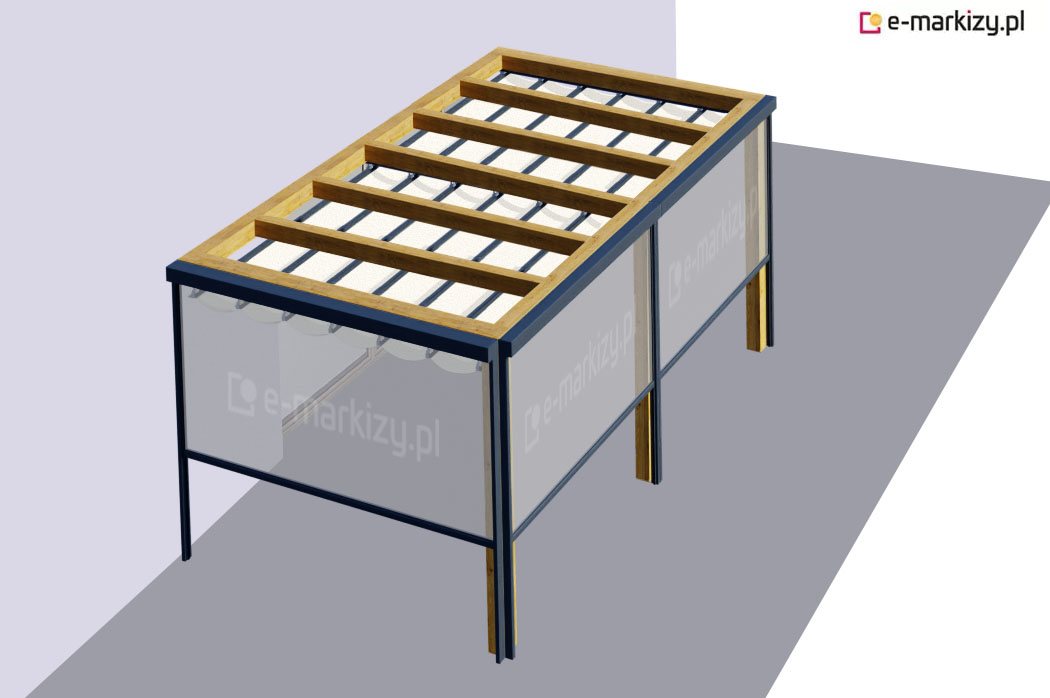 Pergola tarasowa z osłoną typu refleksol ziip na uchwytach z przodu i na boku konstrukcji