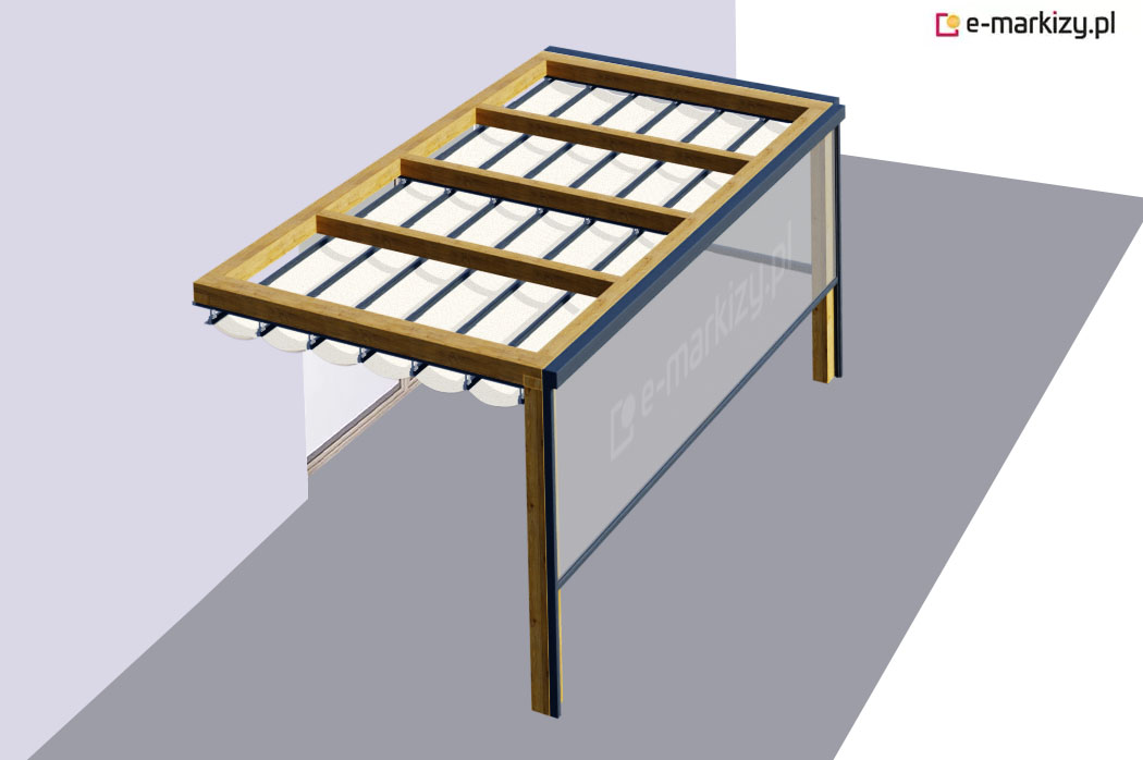 Pergola tarasowa z osłoną typu refleksol ziiip na uchwytach z przodu konstrukcji.
