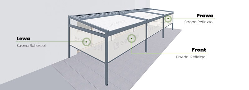 Zależnie od szerokości pergoli, posiada ona inną ilość podpór oraz refleksoli