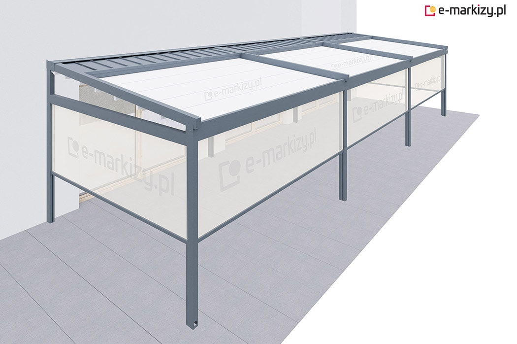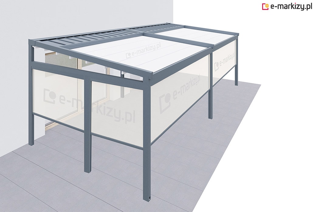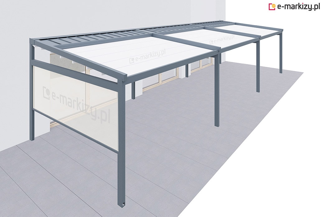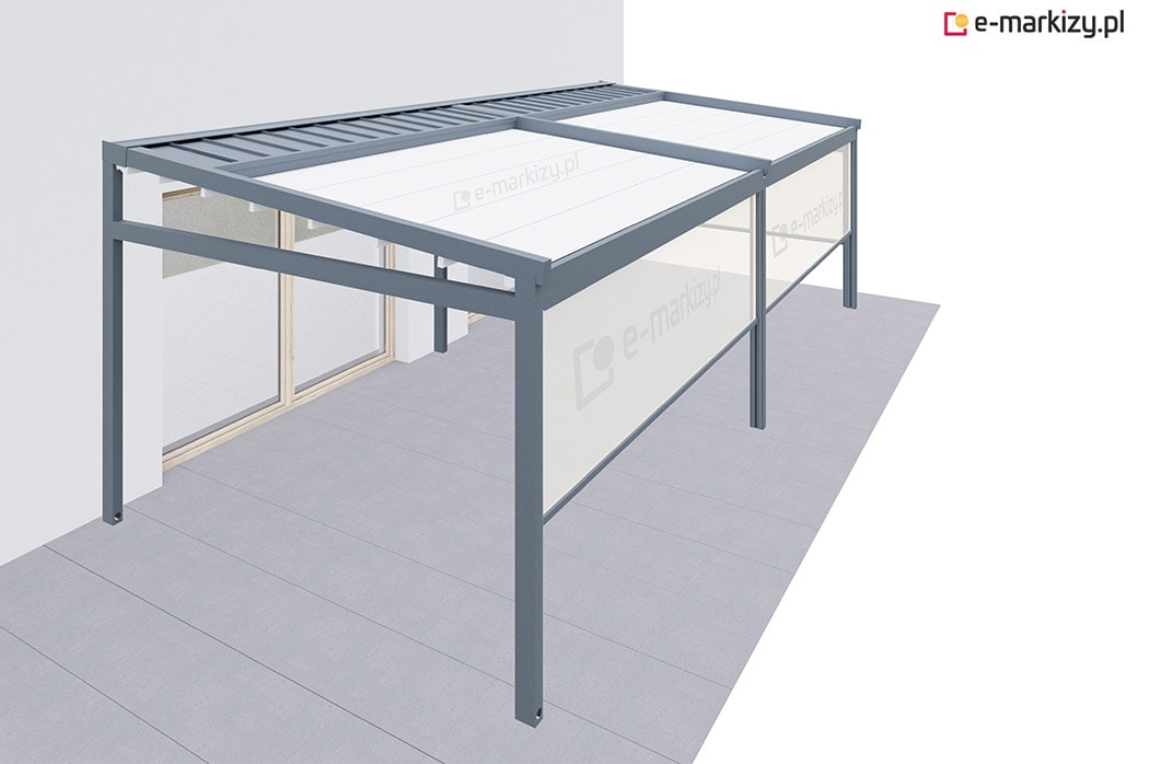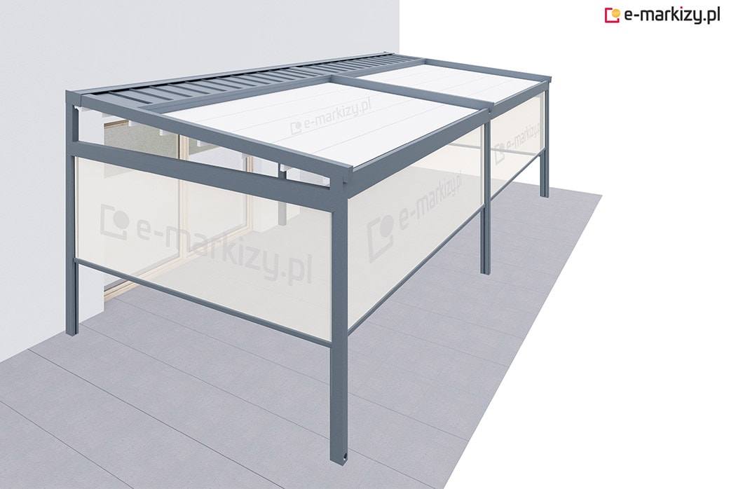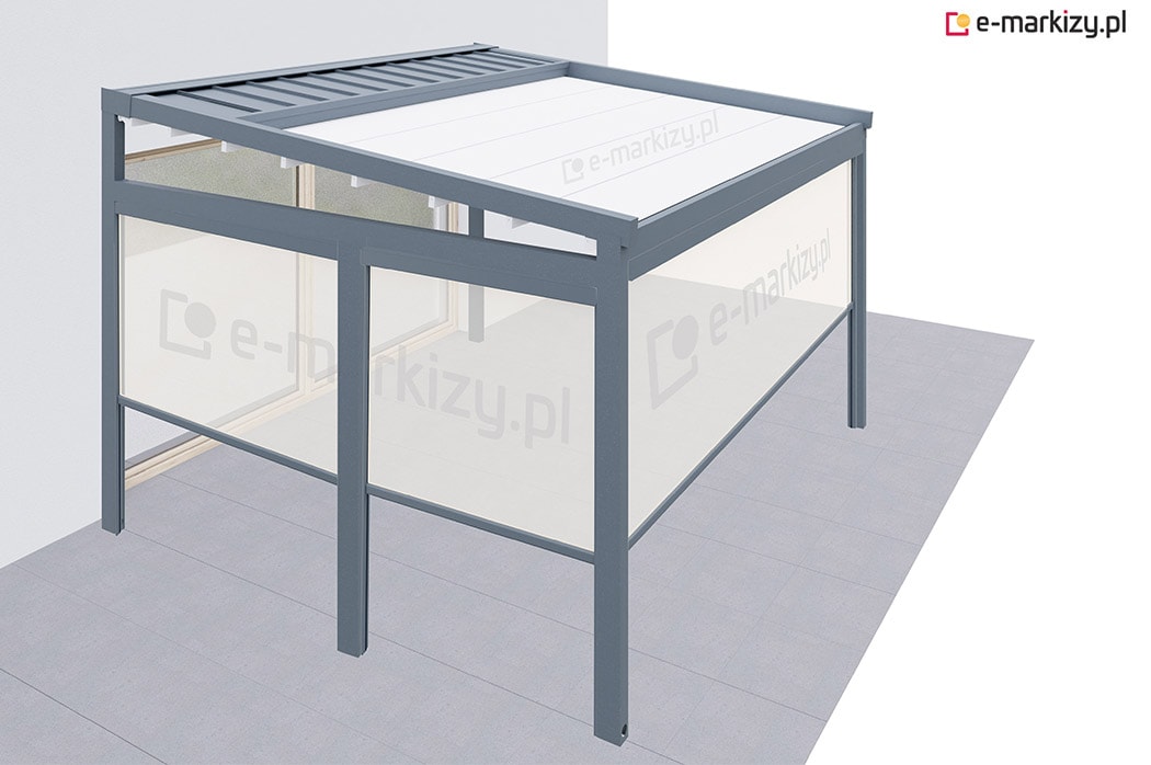 Pergola tarasowa z osłoną typu refleksol ziip z przodu i na boku konstrukcji
