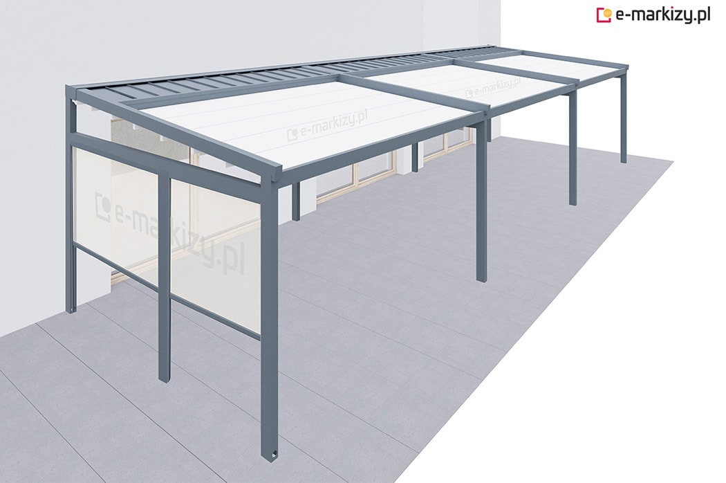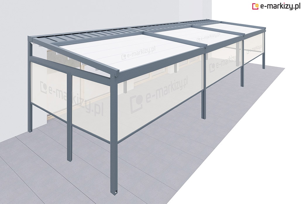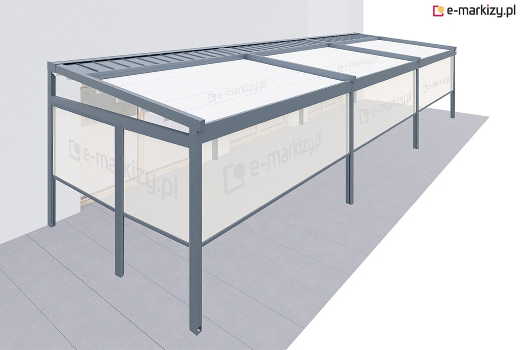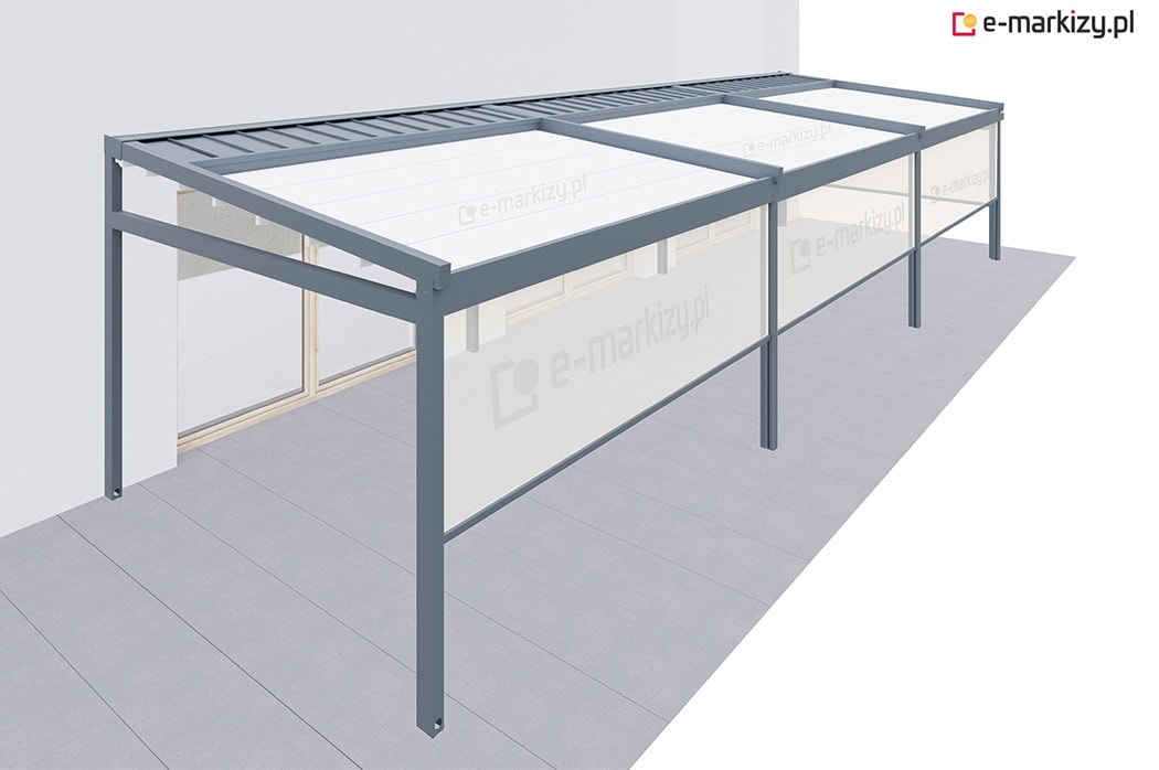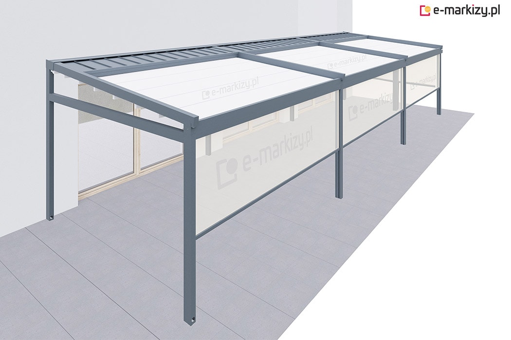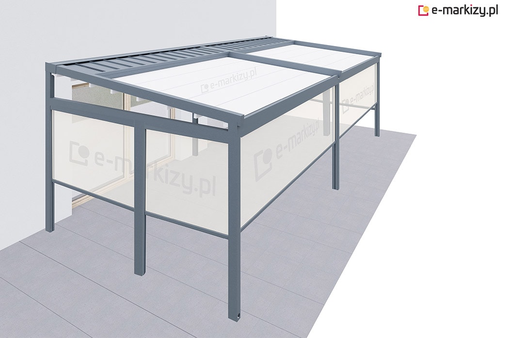 Pergola tarasowa z osłoną typu refleksol ziip z przodu i na boku konstrukcji