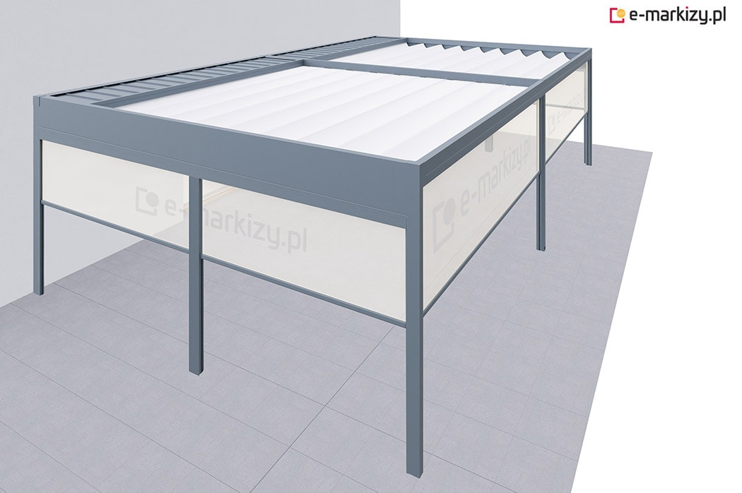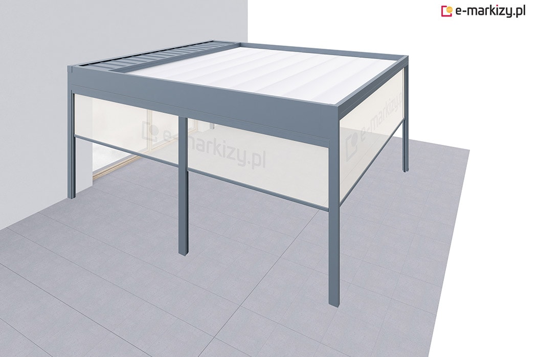 Pergola tarasowa z osłoną typu refleksol ziip z przodu i na boku konstrukcji