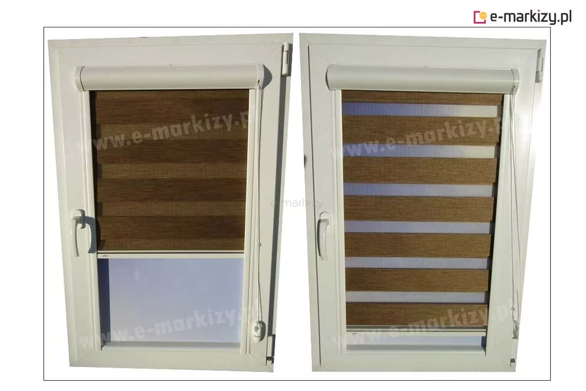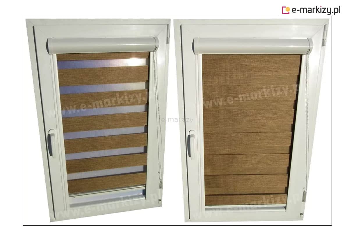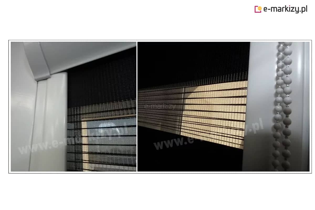Rolety dzień i noc składają się z dwóch warstw tkanin – pierwsza prześwitująca, a druga o gęstszym splocie przeznaczona do zacieniania pomieszczeń. Poruszając ustawieniem tkanin, łatwo możemy dostosować pozycję rolety do ilości prześwitu i wpadającego do wnętrza światła.