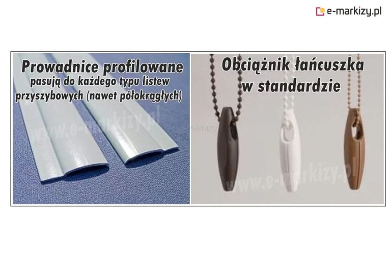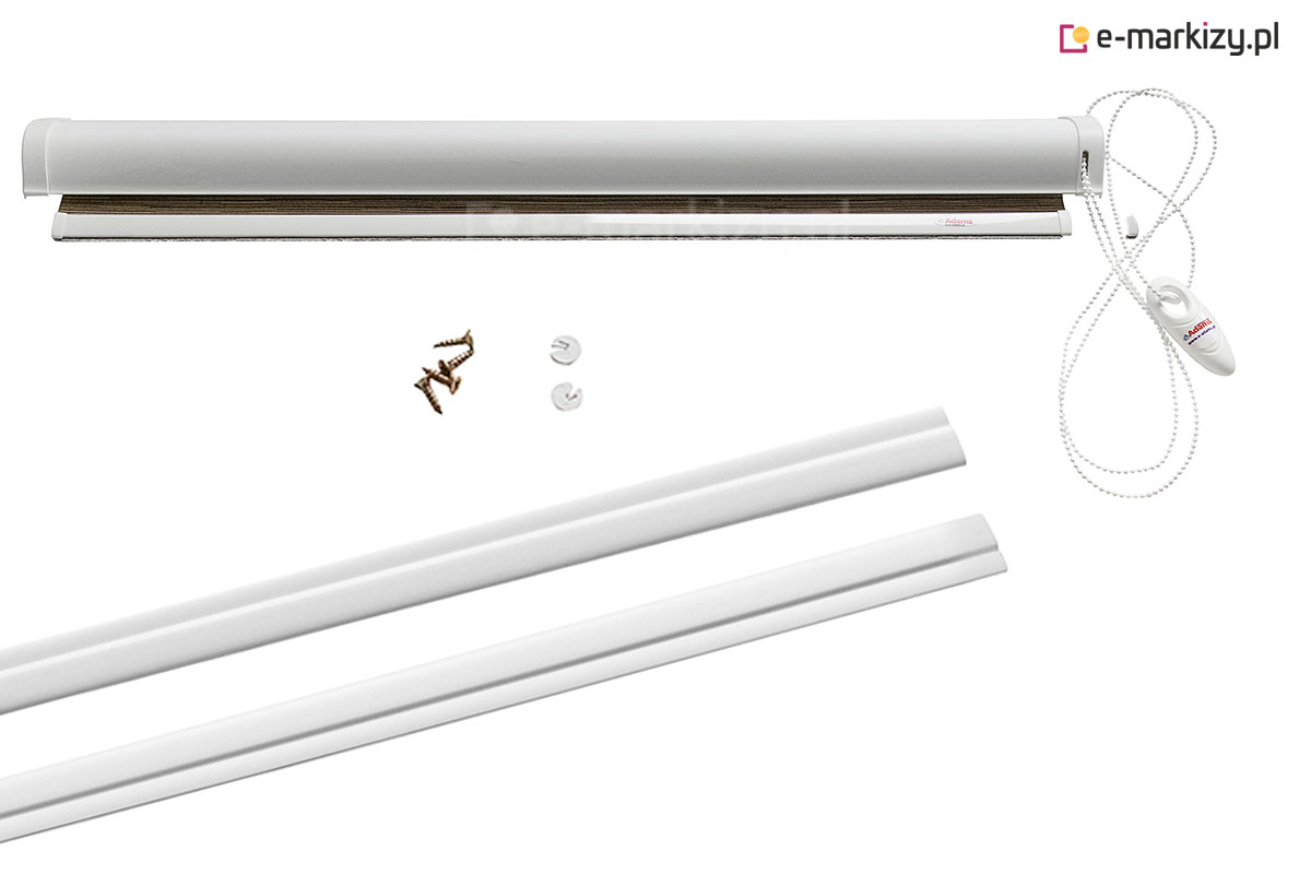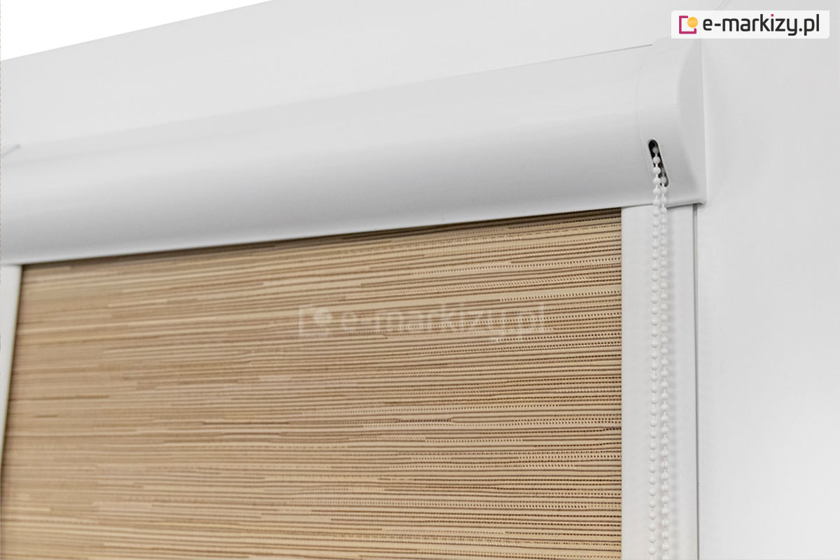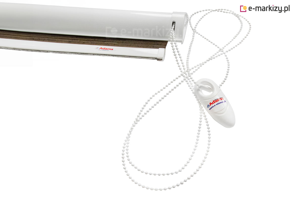 Standardowo bez dopłaty możemy wybrać 2 kolory konstrukcji. Komponenty w tym systemie takie jak: łańcuszek, obciążnik dolny, obciążnik łańcuszka, boki kaset oraz prowadnice dopasowane są do kolorystycznie do kasety. Za dopłatą istnieje możliwość wykonania konstrukcji roletki w innych oryginalnych kolorach np. drewnopodobnych.