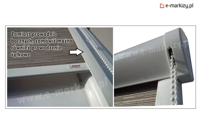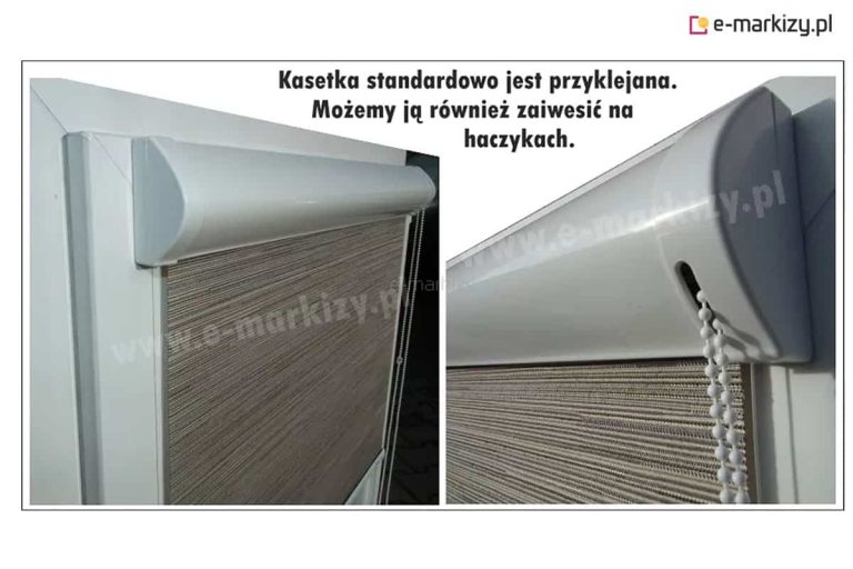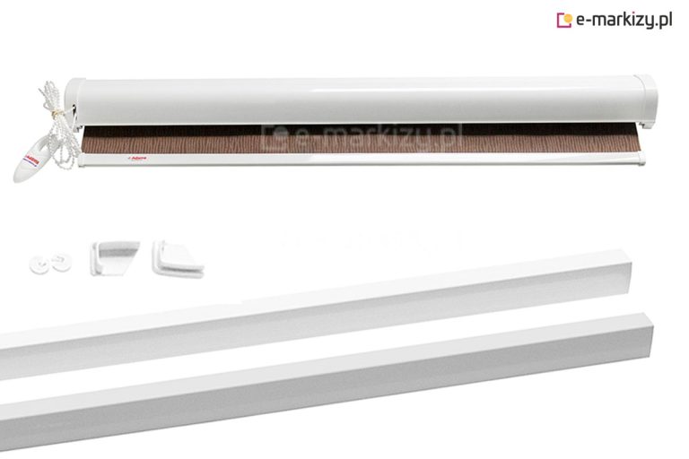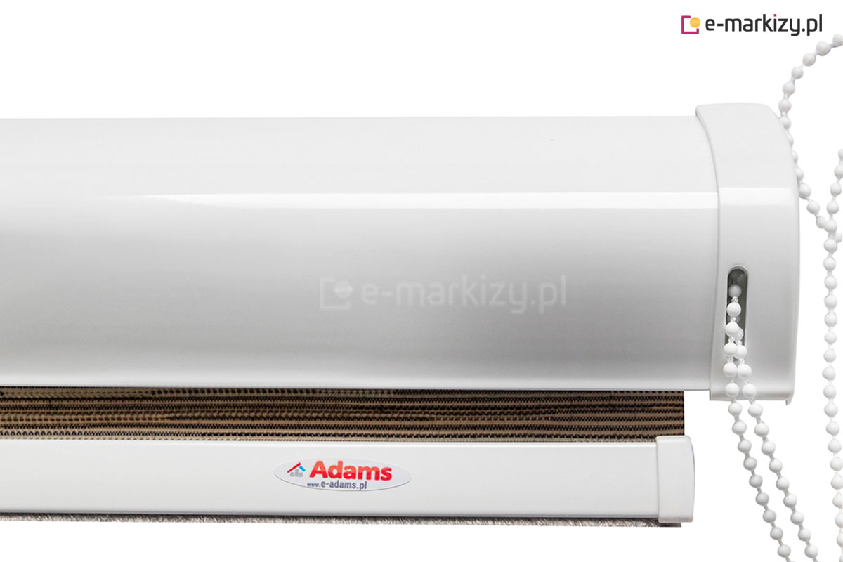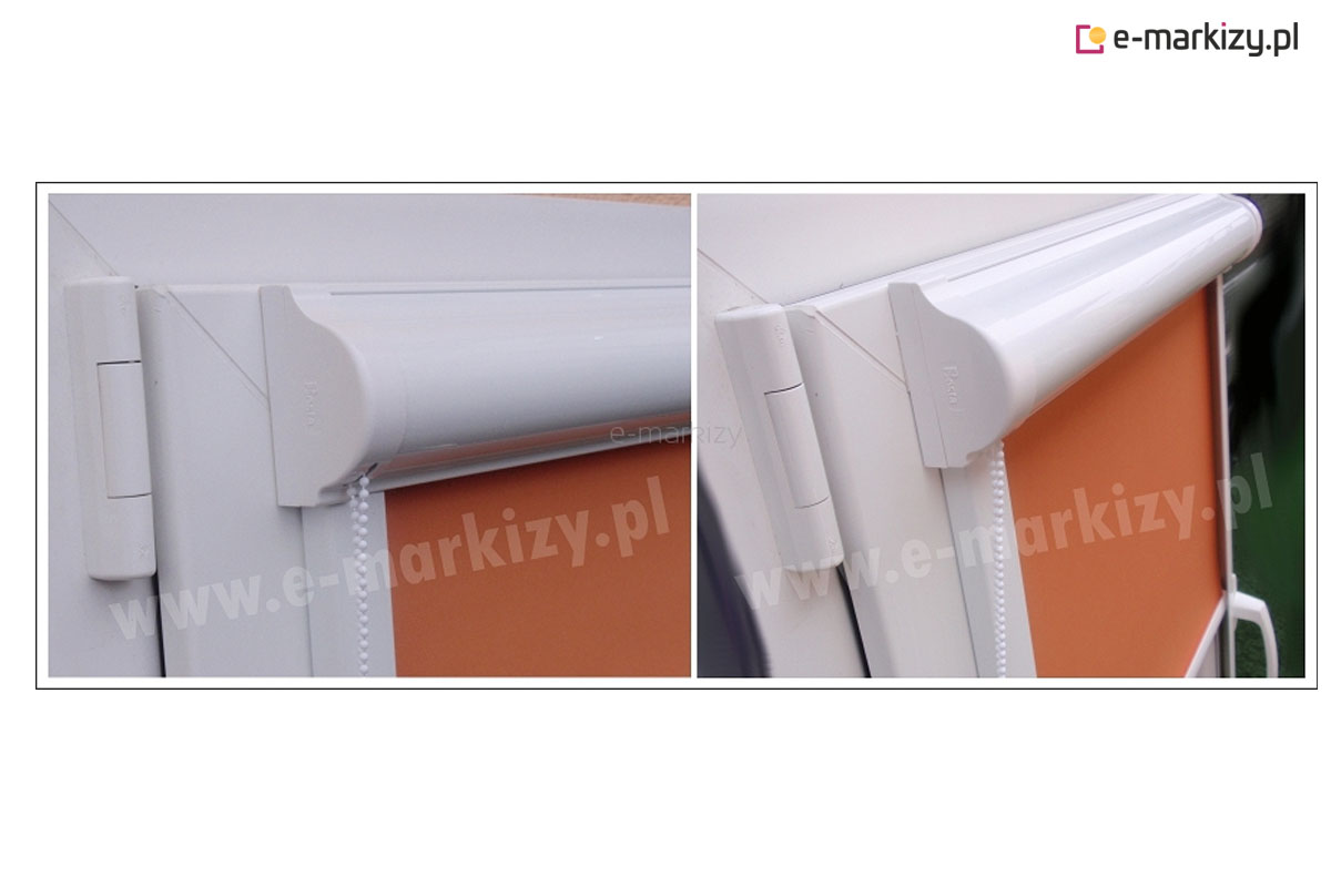 Standardowo bez dopłaty możemy wybrać 2 kolory konstrukcji. Komponenty w tym systemie takie jak: łańcuszek, obciążnik dolny, obciążnik łańcuszka, boki kaset oraz prowadnice dopasowane są do kolorystycznie do kasety. Za dopłatą istnieje możliwość wykonania konstrukcji roletki w innych oryginalnych kolorach np. drewnopodobnych.