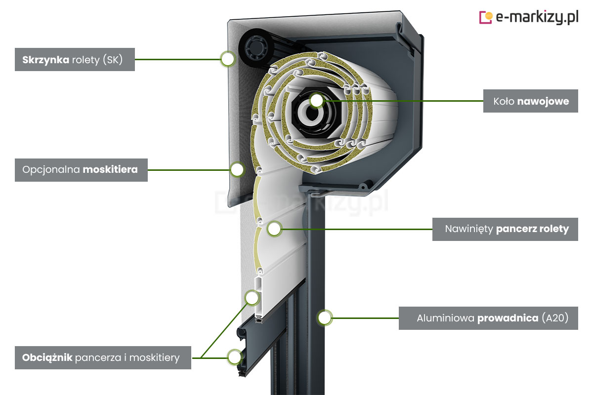 - doskonała izolacja termiczna – rolety zapewniają poprawę bilansu energetycznego budynku poprzez doskonałą izolację cieplną, pozwalają na obniżenie kosztów ogrzewania i chłodzenia pomieszczeń,