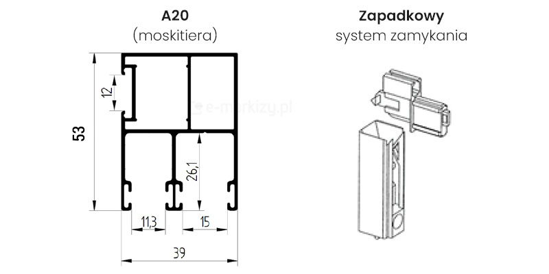 • PP 53/42: Dystansowa prowadnica aluminiowa do rolet, pozwalająca zachować odległość 20 mm od ramy okna, szczególnie użyteczna w przypadku drzwi tarasowych z klamkami.