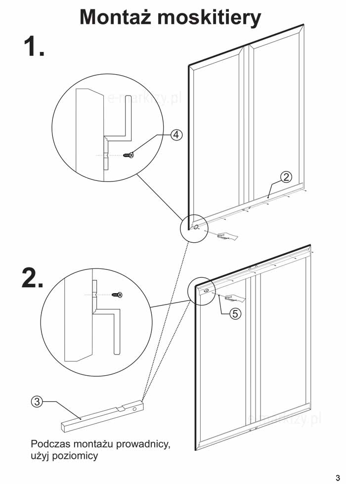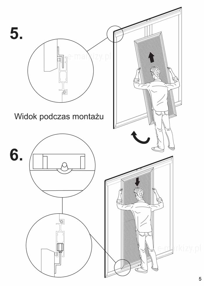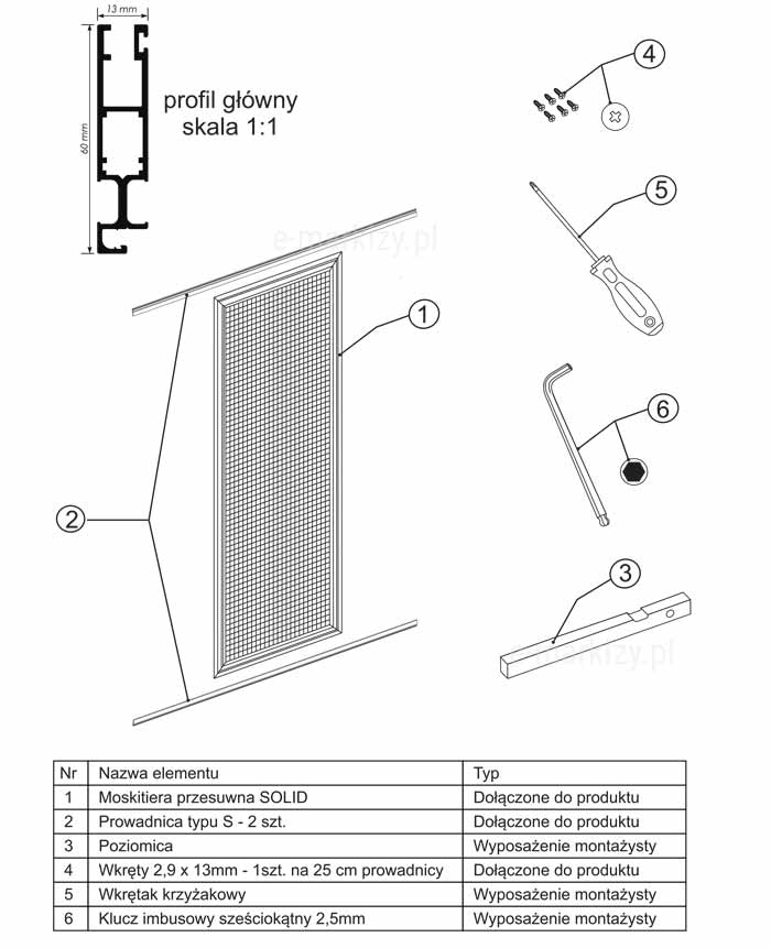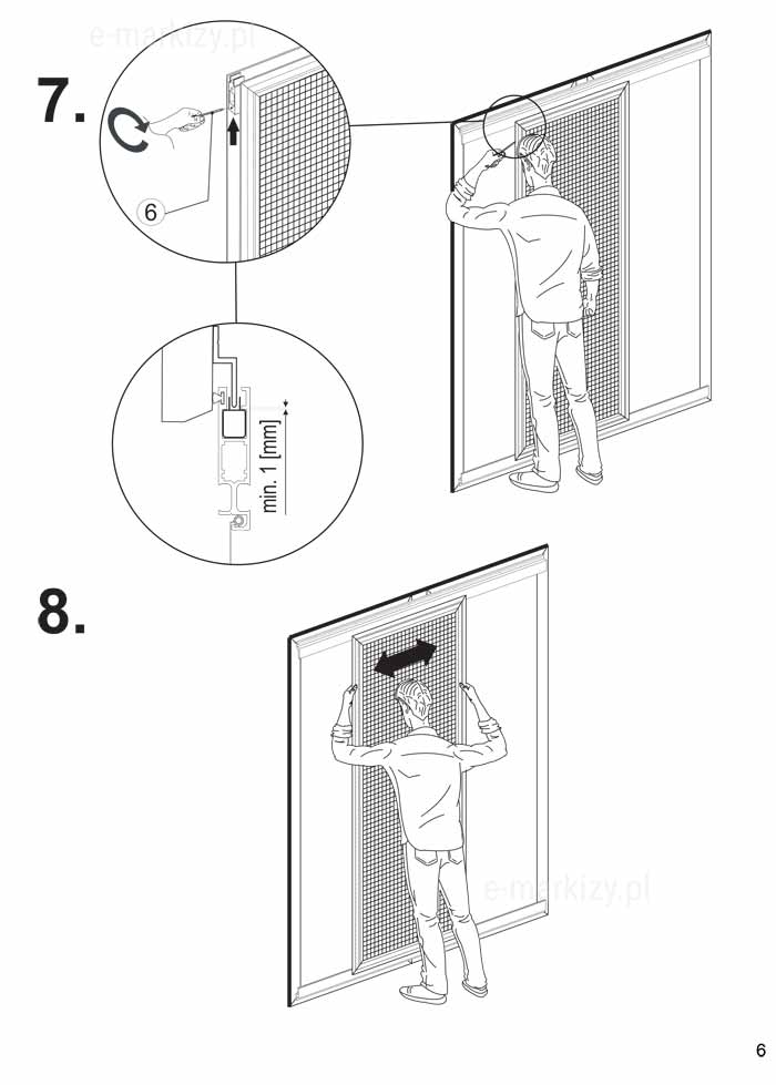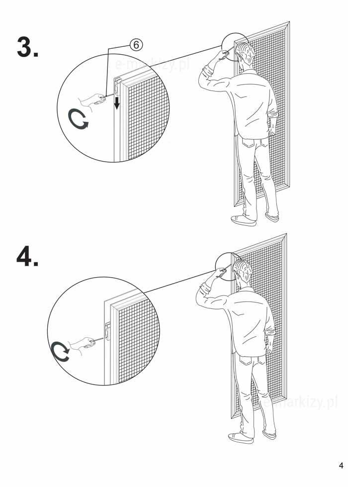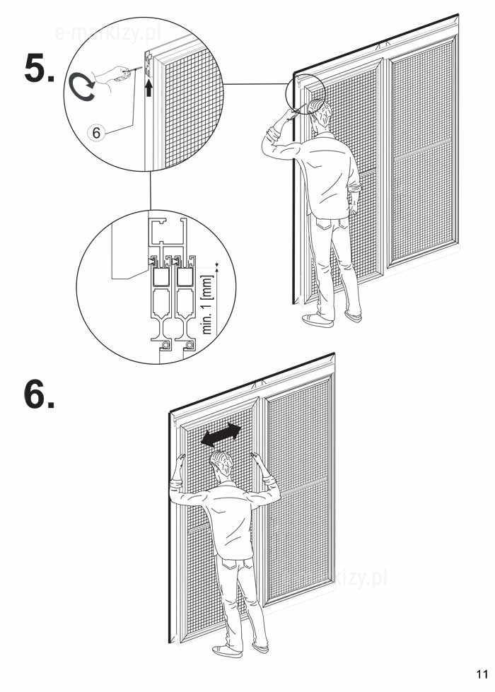 Uwaga! Moskitiera nie zawiera akcesoriów do montażu (wkrętów). Należy dobrać je samodzielnie w zależności od rodzaju powierzchni montażu (np. beton, drewno, tworzywo sztuczne).