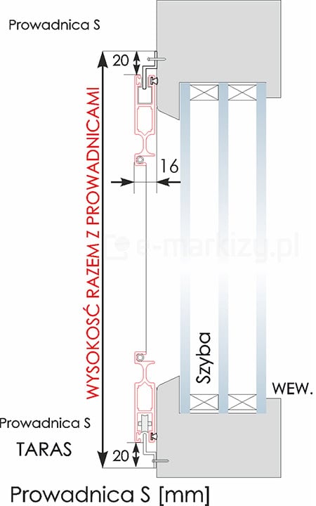 Przykładowy montaż moskitiery pojedynczej (Prowadnica typ S)