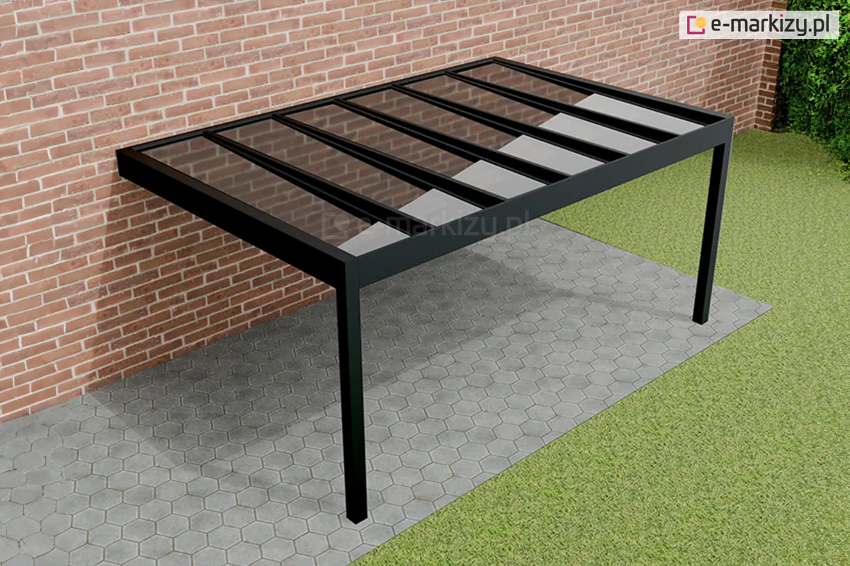 Minimalistyczny design zadaszenia Spekta Glass z dwoma podporami z przodu zapewnia swobodę parkowania i wygodne korzystanie z przestrzeni. Mocowanie konstrukcji do ściany budynku dodaje stabilności i pozwala na oszczędność miejsca, co jest szczególnie ważne na mniejszych posesjach.