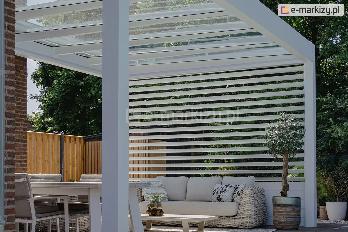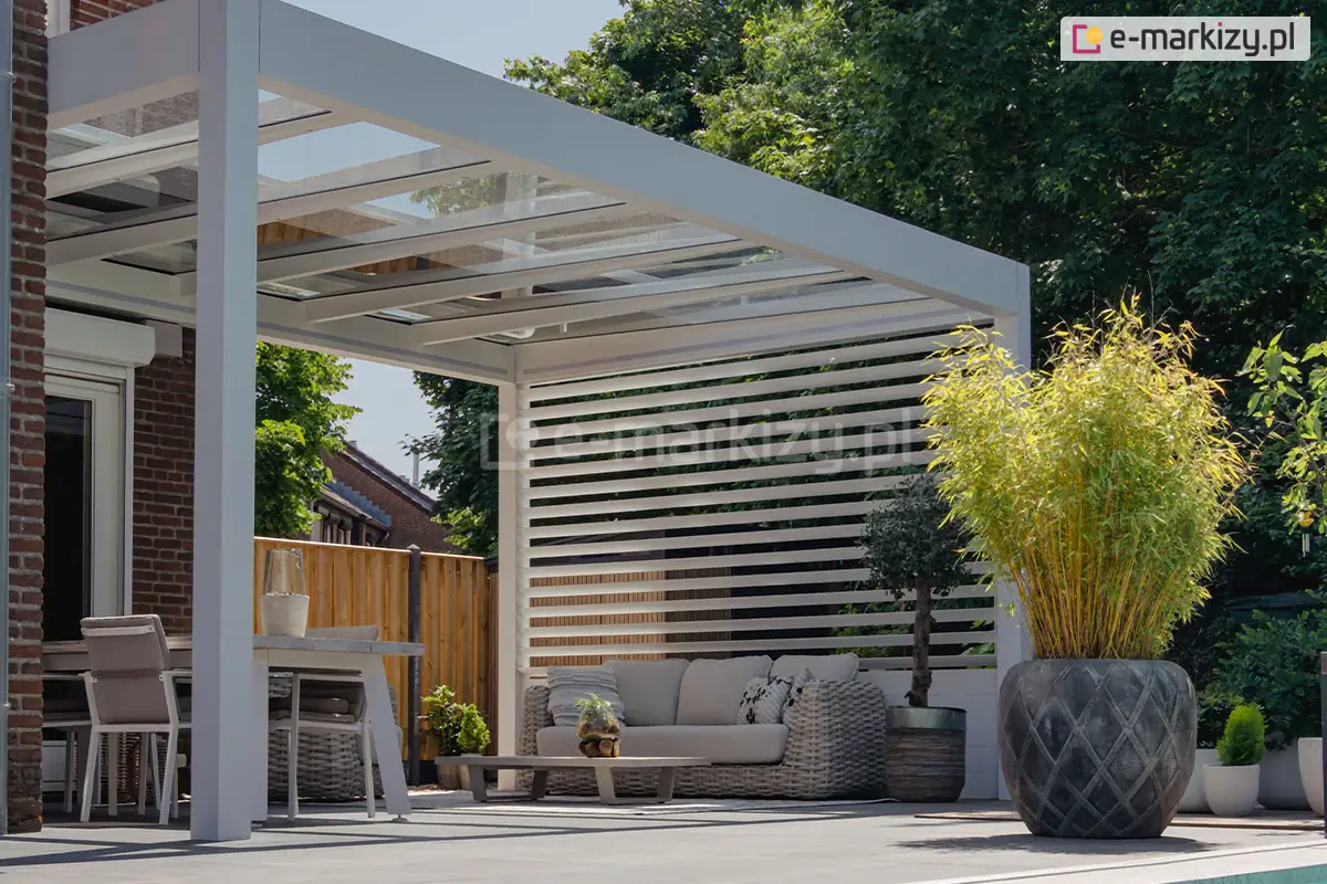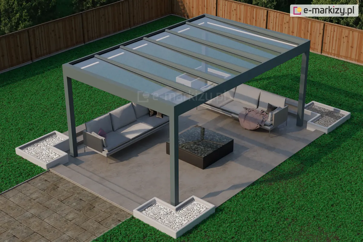 Spekta Glass to rozwiązanie, które imponuje swoją innowacyjną konstrukcją. Rozpiętość 7 metrów na zaledwie 4 słupach pozwala cieszyć się dużą, otwartą przestrzenią bez zbędnych przeszkód, doskonale sprawdzi się w ogrodach lub na otwartych tarasach. To idealny wybór dla tych, którzy pragną połączyć estetykę z praktycznością i wykorzystać zadaszenie jako otwarty garaż. System przystosowany jest do łączenia modułowego ze sobą wielu konstrukcji w celu osłonięcia dużej przestrzeni.