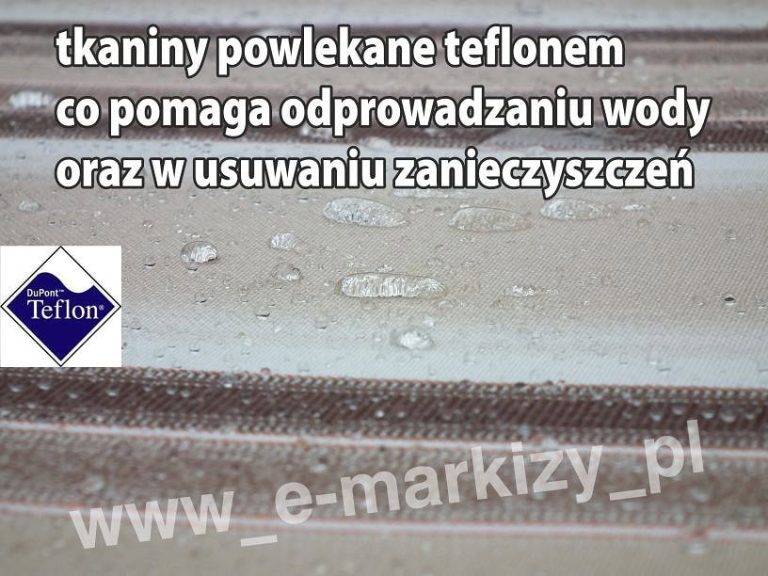Nasze tkaniny są dostępne w ponad 100 kolorach, teflonowa warstwa pomaga w odprowadzaniu wody, zapewnia trwałość kolorów i odporność na działanie światła. Grubość tkaniny zapewnia znaczną wodoodporność zachowując jednocześnie właściwości wentylacyjne.