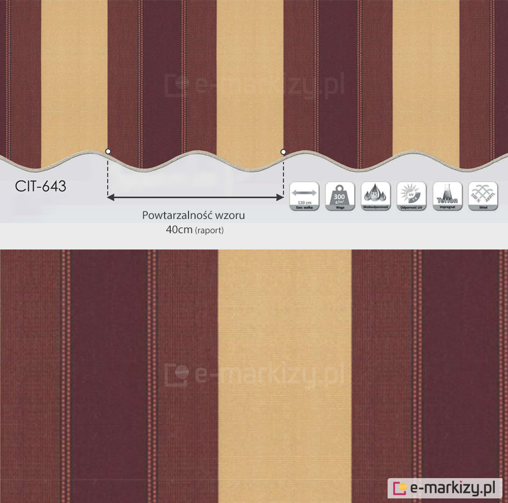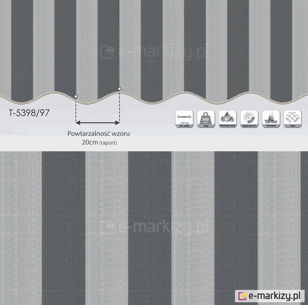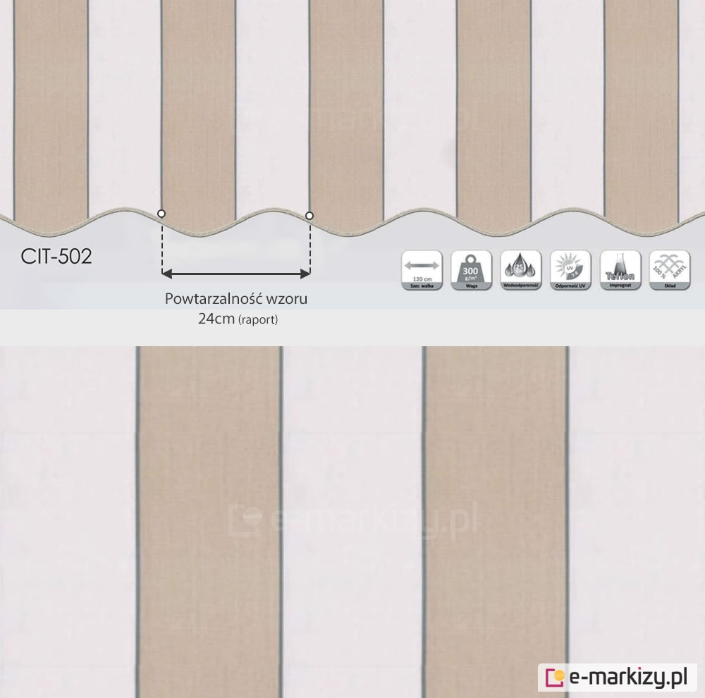 Przy zastosowaniu tkanin przeciwdeszczowych, wymagany kąt nachylenia markizy wynosi 30 stopni.