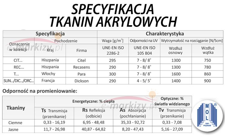 Charakterystyka i Specyfikacja tkanin akrylowych MOL.