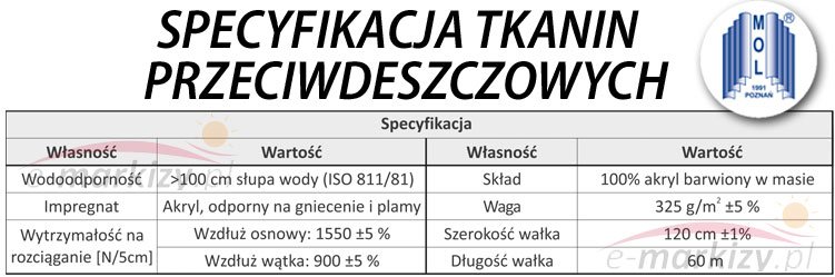 Charakterystyka i Specyfikacja tkanin przeciwdeszczowych MOL.