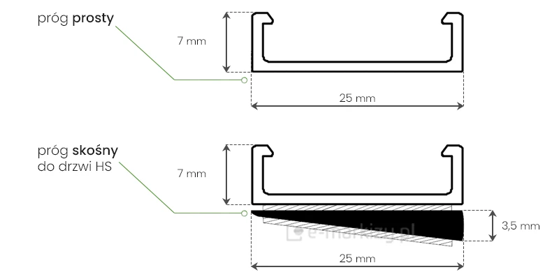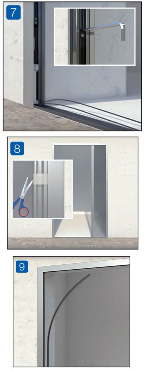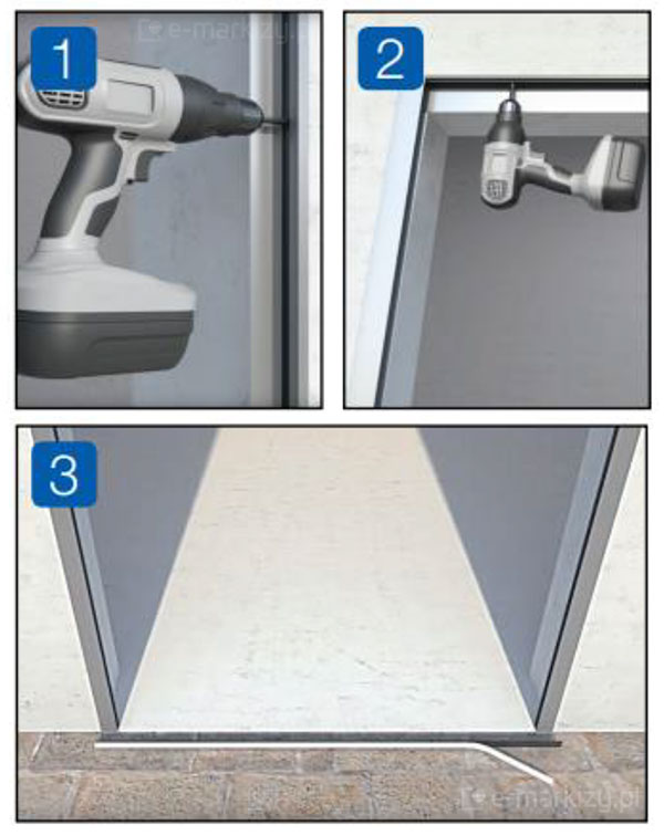 1. Zainstalować profile boczne „U” po obu stronach drzwi, a następnie profil górny.