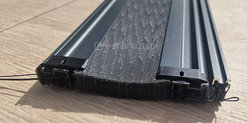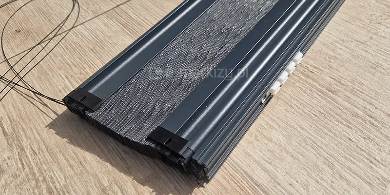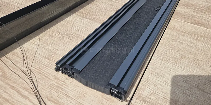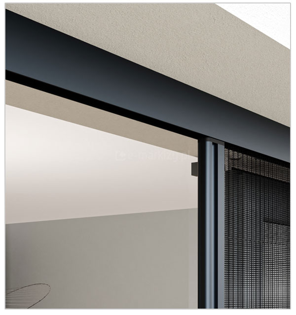 4. Umieścić zestaw z siatką na prowadnicach i docisnąć do jednej strony profilu bocznego do momentu „kliknięcia” wszystkich klipów montażowych.