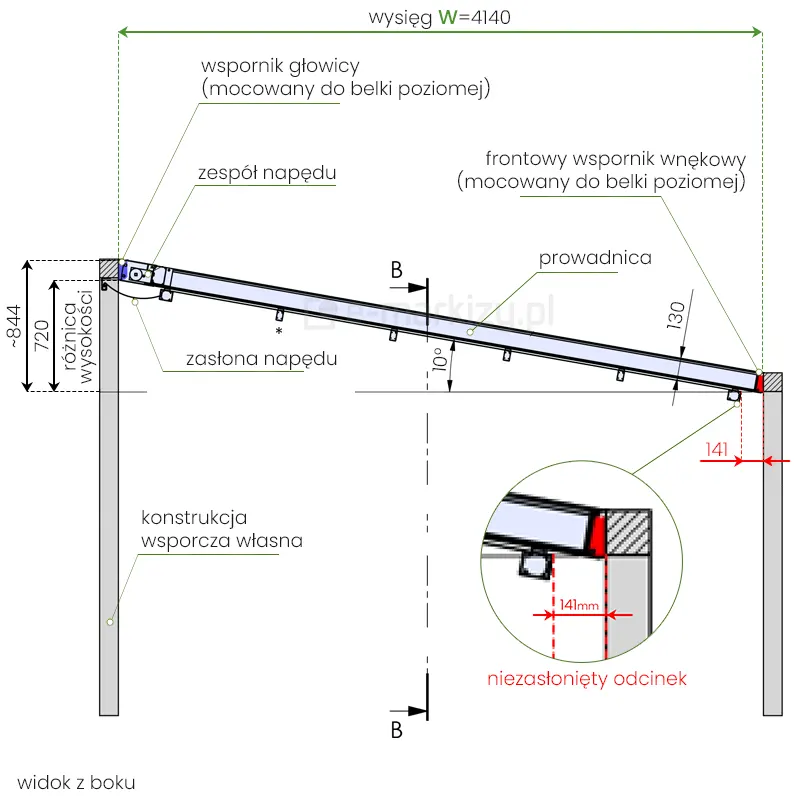 Strona dotyczy pergoli tarasowej Square firmy Mol wykonywanej na wymiar zgodnie z informacjami podanymi podczas zamówienia w konfiguratorze produktu. Więcej informacji można znaleźć w konfiguratorze lub na pozostałych podstronach produktu.