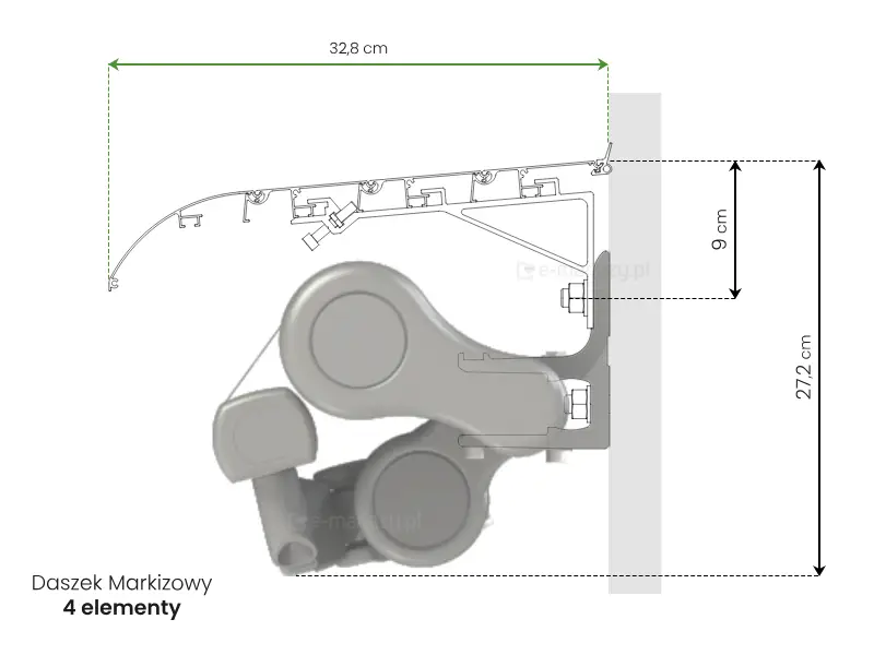 Daszek do markizy powinien być większy od całej konstrukcji i jest wykonywany na indywidualne zamówienie klienta, aby zapewnić optymalne dopasowanie.