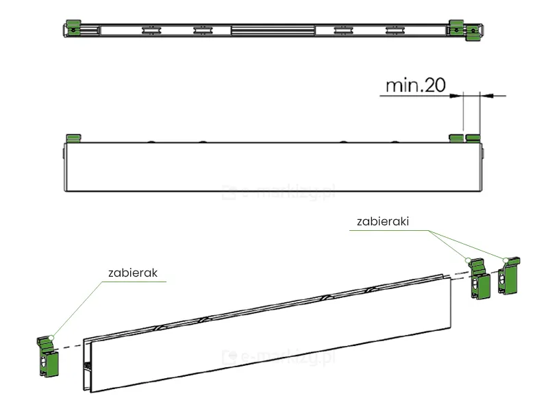 System drzwi przesuwnych Auris może być wyposażony w zabieraki umieszczone w dolnej części paneli. Dzięki nim skrzydła mogą przesuwać się razem – pociągnięcie za jedno powoduje jednoczesne otwieranie lub zamykanie wszystkich.