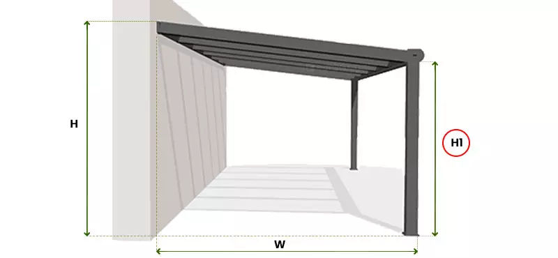 Pomiar zadaszenia – Zestawienie wymiarów zadaszenia dla wysokości standardowej H1=250cm