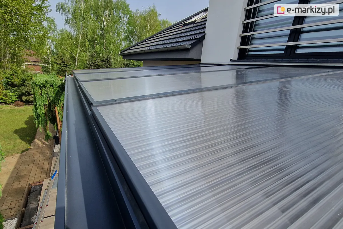 By dodatkowo ochronić się przed słońcem, stosuje się rolety poziome ze specjalną tkaniną odbijającą promienie UV. Roleta taka montowana jest pod panelami dachowymi, więc nie jest narażona na deszcz czy śnieg. Zwinięta tkanina chowa się do kasety, więc jest niemal niewidoczna, a rozwijanie odbywa się za pomocą pilota bezprzewodowego, którym sterujemy wszystkimi tkaninami lub tylko niektórymi pasami.