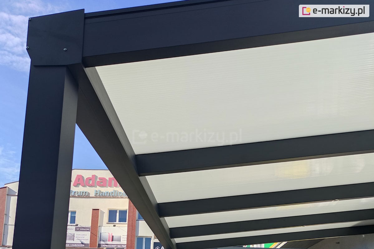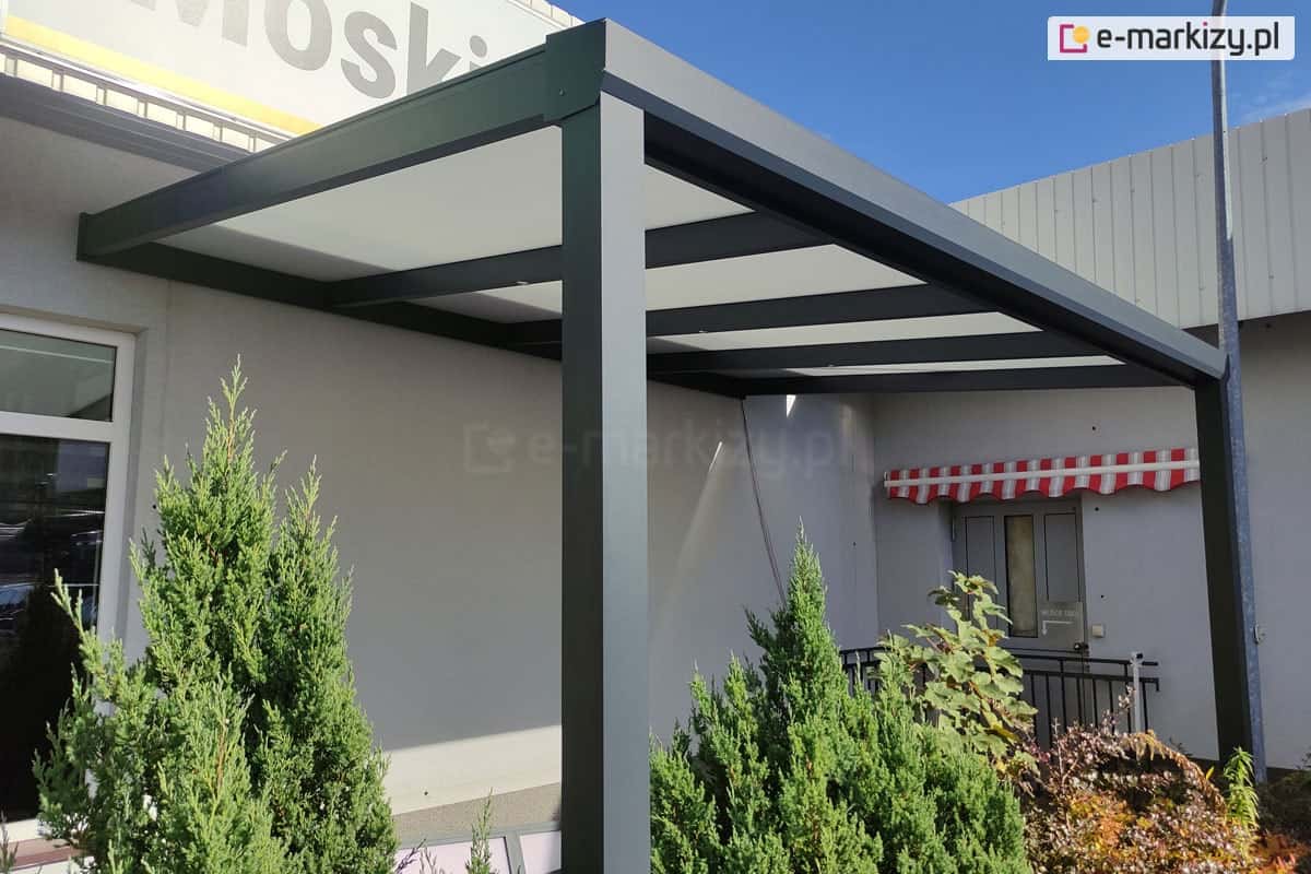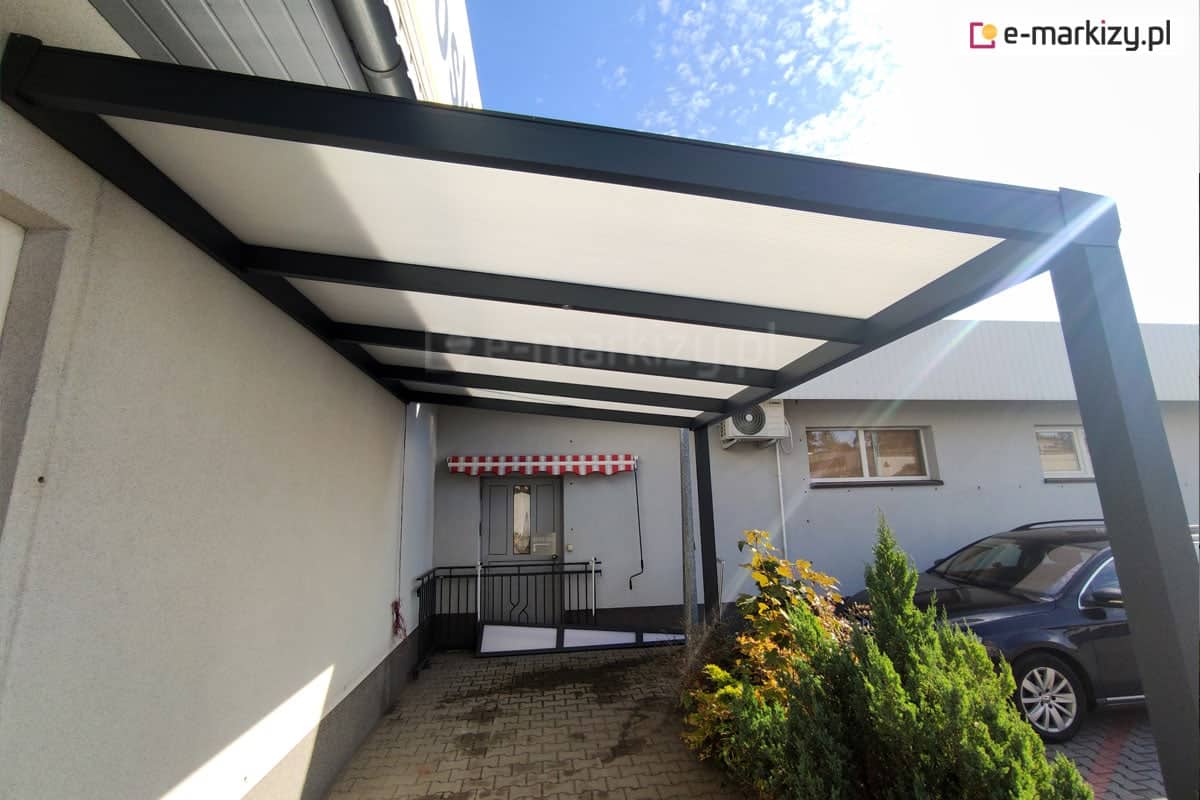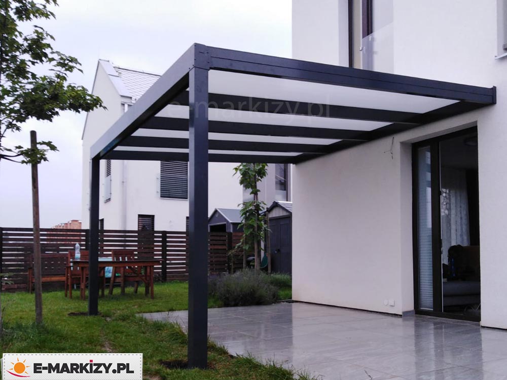 Standardowe kolory zadaszenia Modes to biały, antracyt i brąz. Najczęściej wybierane przez klientów to kolory biały i antracyt – co widać na zdjęciach w galerii/ Dach poliwęglanowy dostępny jest w trzech odcieniach: przezroczystym, dymionym i opal (mlecznym). W tym obszarze klienci wybierają różne rozwiązania, choć stosunkowo najrzadziej wybierany jest poliwęglan dymiony. Często wybierany jest natomiast poliwęglan lity, który jest doskonałą alternatywa dla szkła.