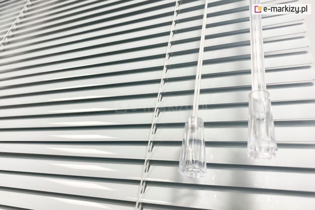 Zastosowanie prowadzenia bocznego fix zmniejsza szerokość o ~4,5cm. Dbając o jakość naszych wyrobów, wszystkie elementy składowe żaluzji dobierane są w kolorach najbardziej zbliżonych do koloru lamel. Ilość sznurków i drabinek jest uzależniona od szerokości żaluzji oraz rodzaju lamel. Standardowo sznurki zakończone są dzwonkiem PCV w kolorze białym (sznurek biały) lub lexanowym (sznurek kolorowy).