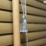 Żaluzjami steruje się ręcznie – za pomocą sznurków (do zwijania i rozwijania rolety) oraz pokrętła (do zmiany kąta nachylenia lamel).