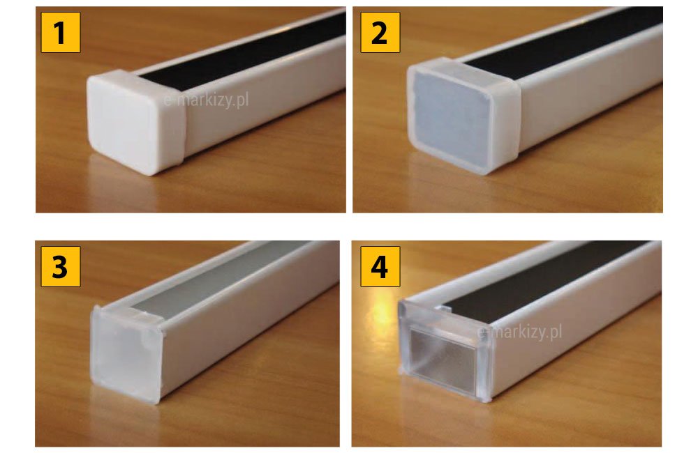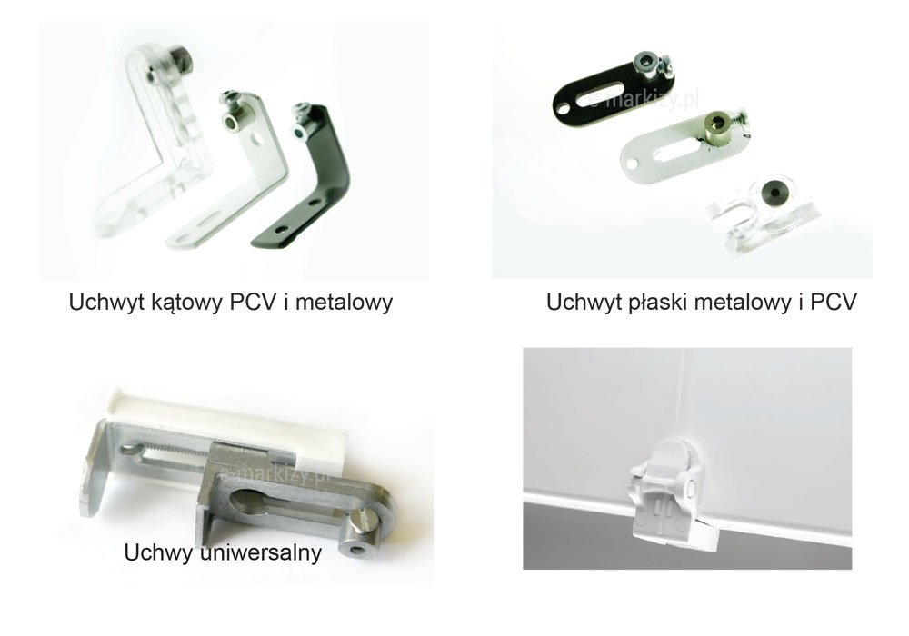 • uchwyt zaciskowy PCV biały, brązowy, lexanowy