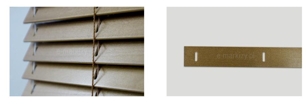 W lamelach żaluzji drewnianych 25 mm z prowadzeniem bocznym otwory na to prowadzenie mają kształt elipsy i umiejscowione są w odległości 1,5 cm od krawędzi lamela.