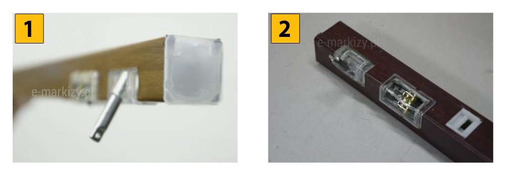 1. Pokrętło i mechanizm podnoszący żaluzję po przeciwnych stronach rynny (minimalna szerokość żaluzji 21,5cm)