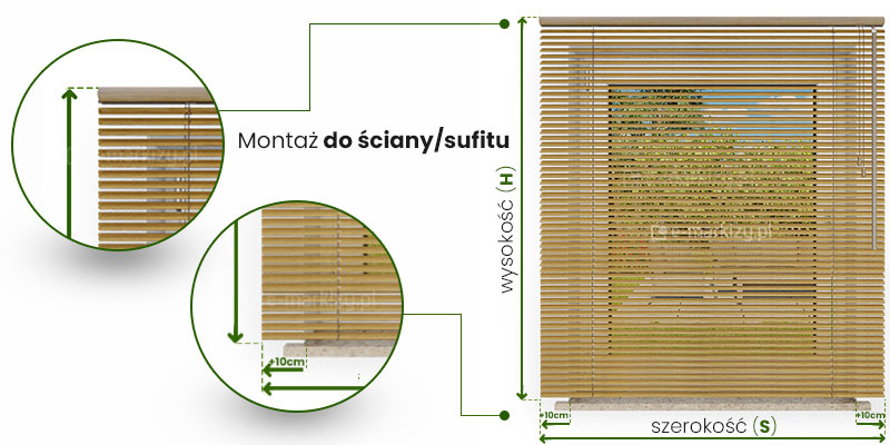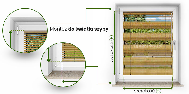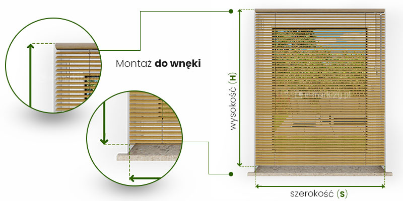 Żaluzja Drewniana 25mm Instrukcja pomiaru żaluzji w zależności od sposobu montażu