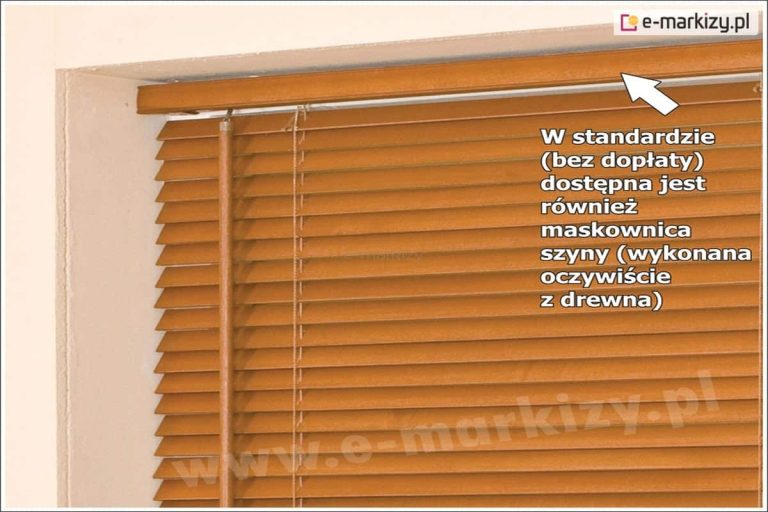 W standardzie oferowane przez nas rolety drewniane wyposażone są w maskownice, które zakryją mechanizm oraz rynnę (maskownica prosta lub z boczkami). Żaluzje drewniane z maskownicą prezentują się elegancko, gdy kolorystyka wykończenia dopasowana jest do barwy lamel. Mogą także prezentować się bardziej awangardowo – gdy maskownica i wykończenie rolety wykonane są w kontrastowych kolorach. Dbając o jakość naszych wyrobów, wszystkie elementy składowe żaluzji dobierane są w kolorach najbardziej zbliżonych do koloru lamel. Boki lamel bejcowane są kolorem najbardziej zbliżonym do koloru lamel. Jeśli potrzebujesz rolety drewnianej w nietypowym zestawieniu kolorystycznym – napisz do nas, nasi doradcy chętnie pomogą w wykreowaniu idealnej osłony dla Ciebie.