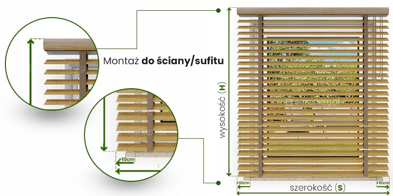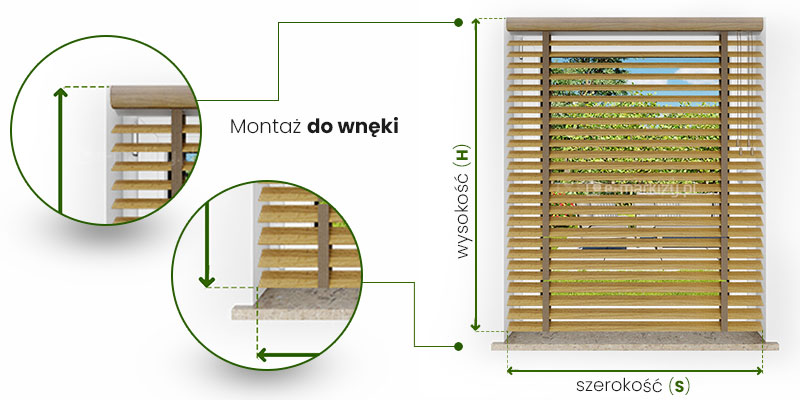 Żaluzja Drewniana 50mm Instrukcja pomiaru żaluzji w zależności od sposobu montażu