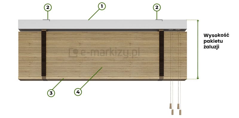 Wyliczenie wysokości pakietu żaluzji drewnianej 50mm: