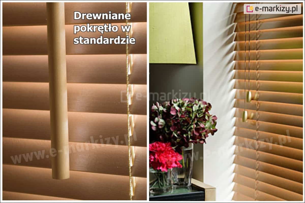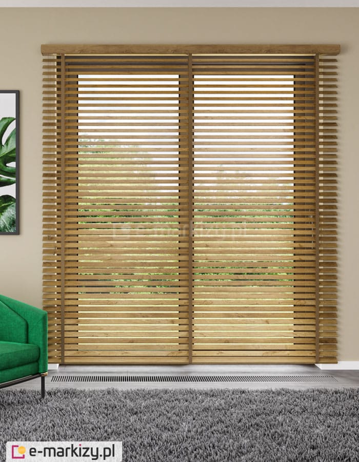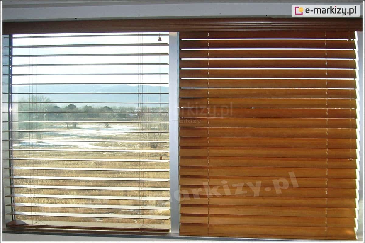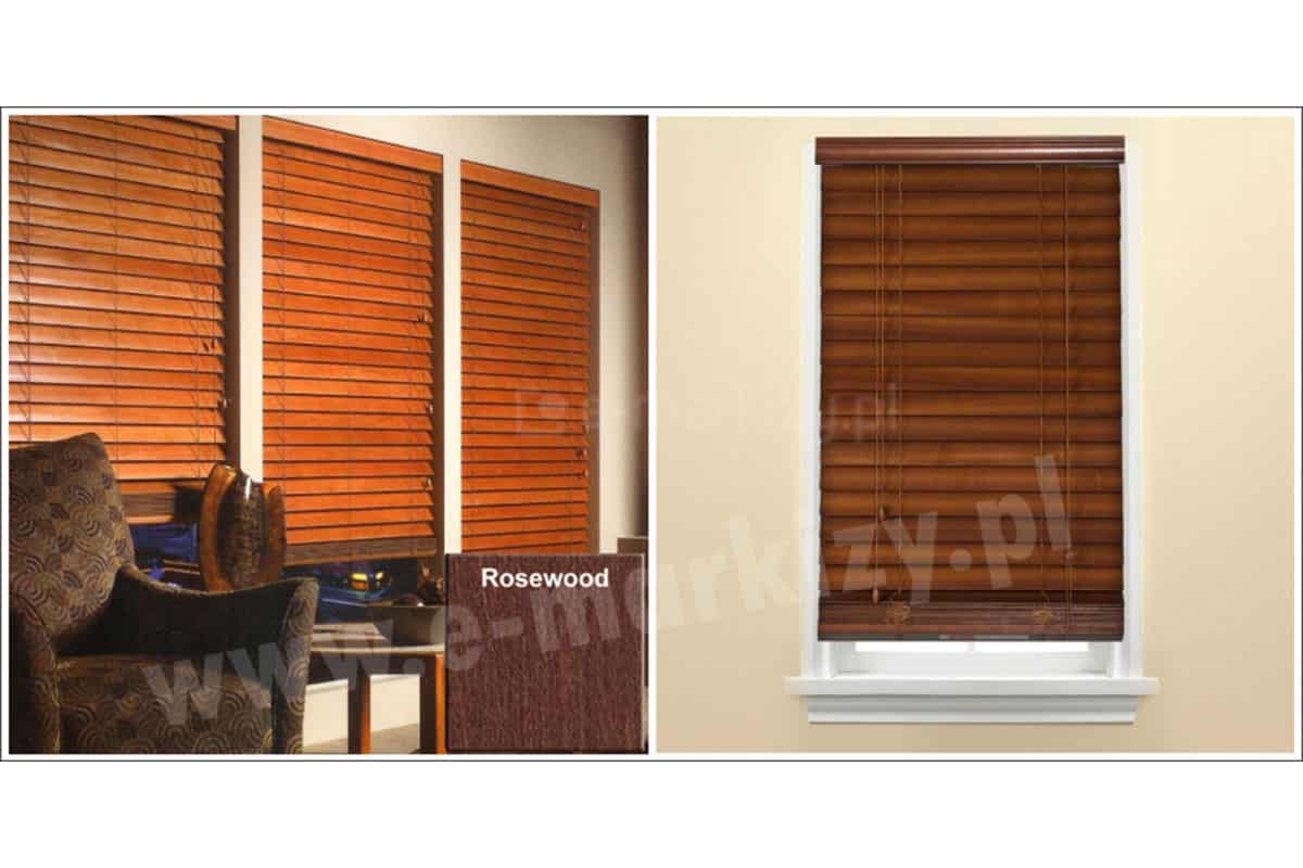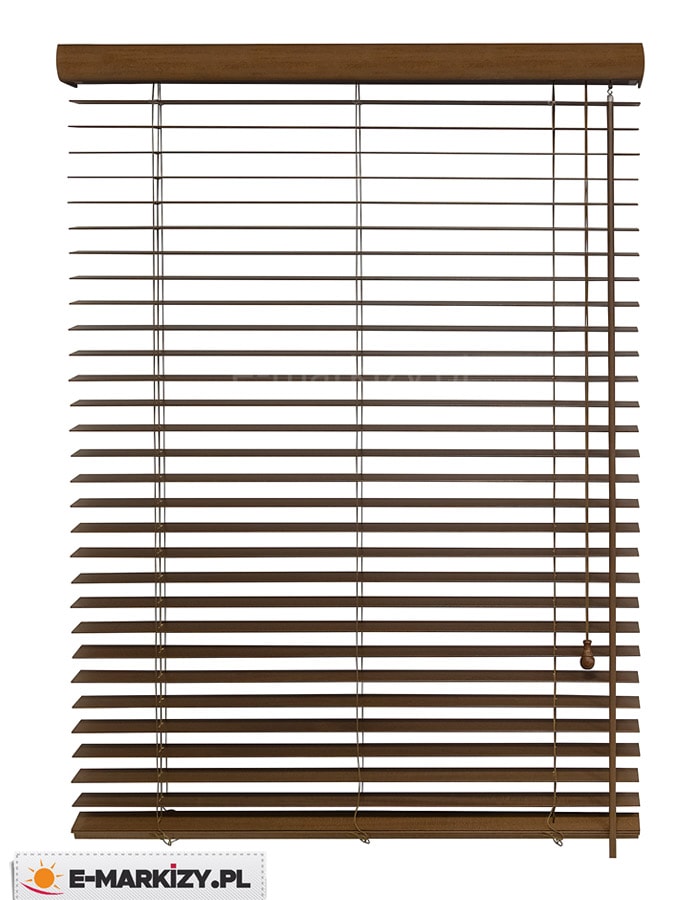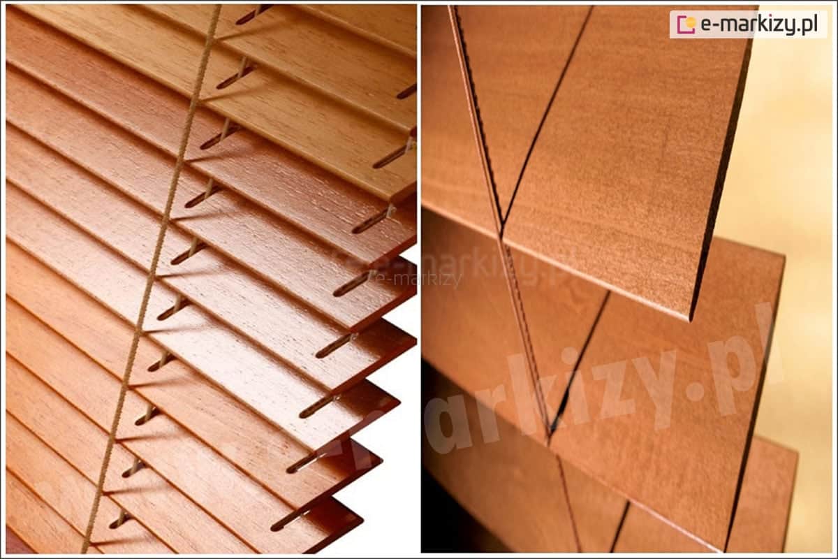 Prezentujemy bogatą galerię zdjęć żaluzji drewnianych wykonywanych na wymiar. Konstrukcja takiej żaluzji to m.in. rynna aluminiowa, która przykryta jest maskownicą drewnianą w kolorze lameli. Dolna rynna, maskownica górna i pokrętło drewniane są wykonane oczywiście z drewna i występują bez żadnej dopłaty w standardzie. Rolety drewniane te są wykonane z wysokogatunkowego drewna brzozowego. Najwyższej jakości pióra brzozowe w połączeniu z wytrzymałymi drabinkami sznurkowymi sprawiają, że żaluzje drewniane to estetyczne i wytrzymałe rozwiązanie osłonowe na wiele lat. Dostępne wielkości lameli żaluzji to 25mm oraz 50mm.
