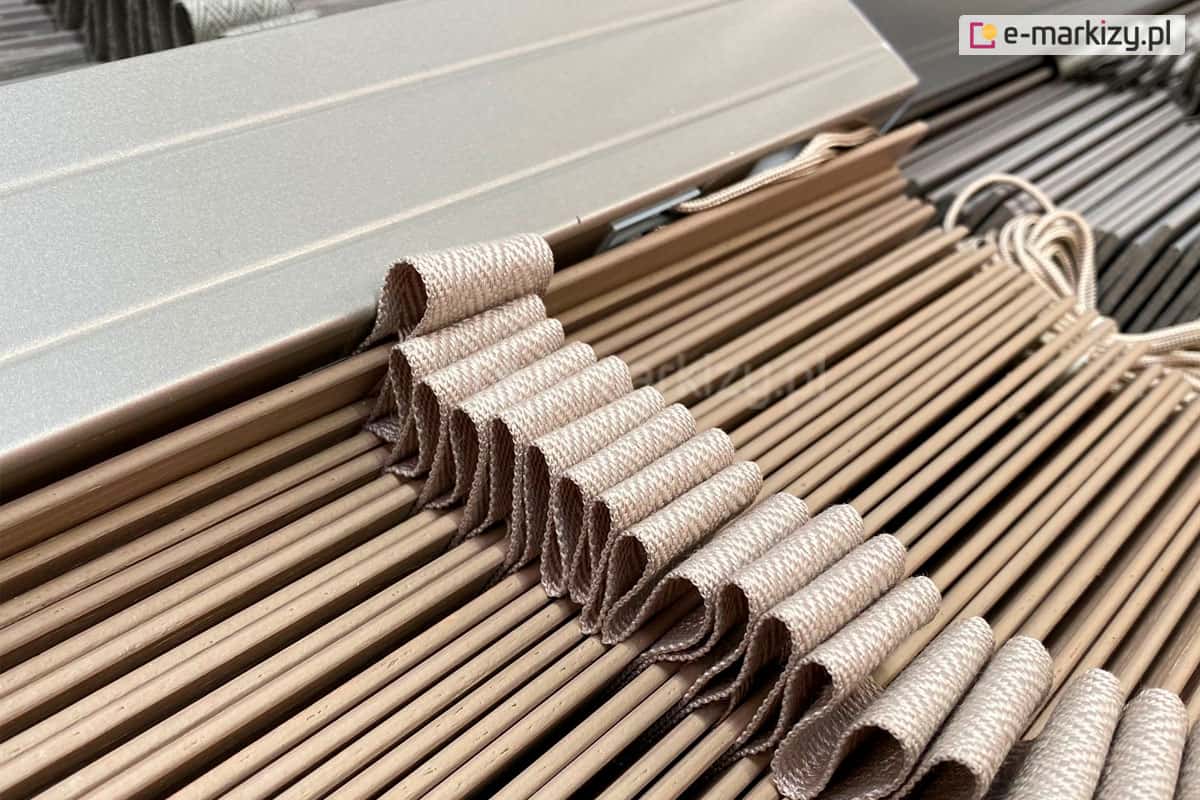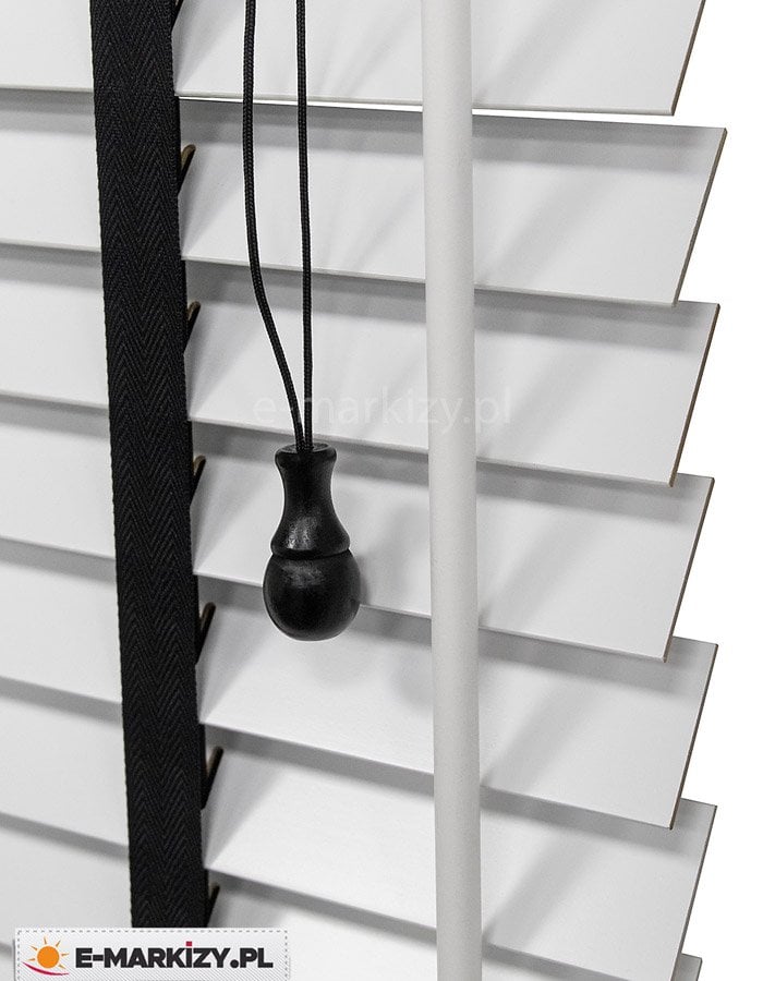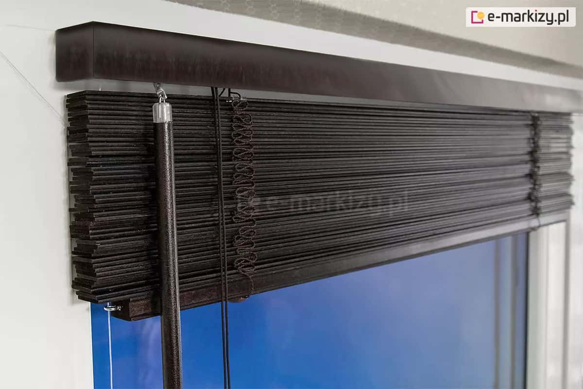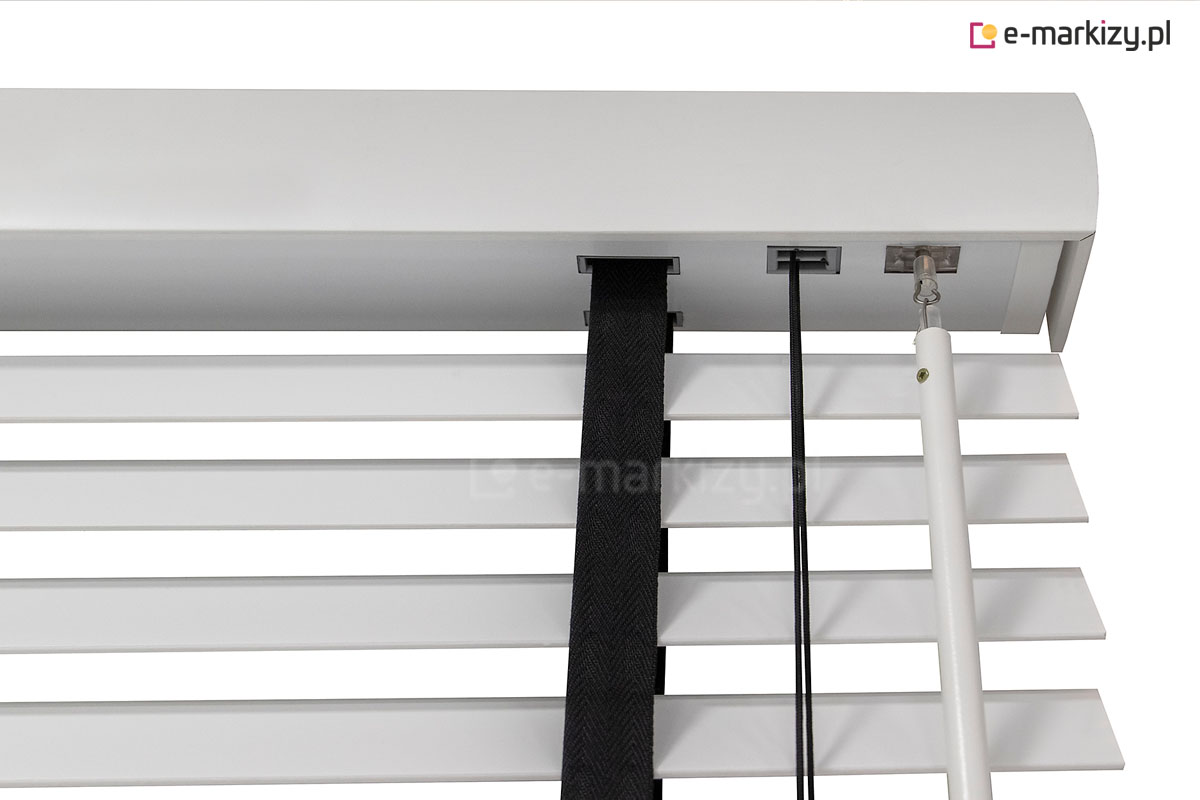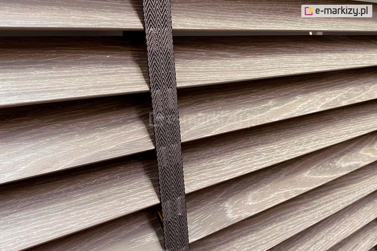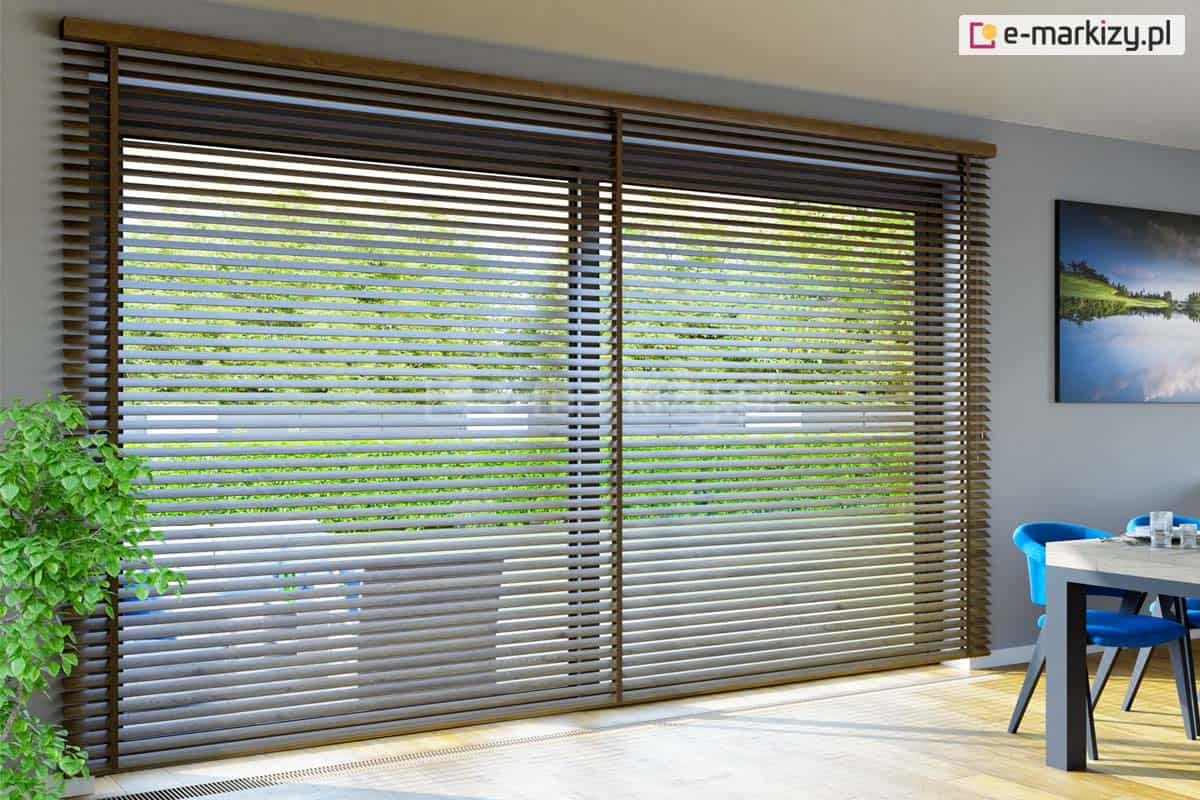 Prezentujemy bogatą galerię zdjęć żaluzji drewnianych wykonywanych na wymiar. Konstrukcja takiej żaluzji to m.in. rynna aluminiowa, która przykryta jest maskownicą drewnianą w kolorze lameli. Dolna rynna, maskownica górna i pokrętło drewniane są wykonane oczywiście z drewna i występują bez żadnej dopłaty w standardzie. Rolety drewniane te są wykonane z wysokogatunkowego drewna brzozowego. Najwyższej jakości pióra brzozowe w połączeniu z wytrzymałymi drabinkami sznurkowymi sprawiają, że żaluzje drewniane to estetyczne i wytrzymałe rozwiązanie osłonowe na wiele lat. Dostępne wielkości lameli żaluzji to 25mm oraz 50mm.
