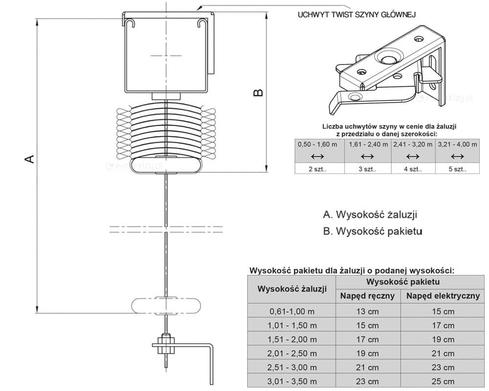 H – Wysokość żaluzji do 350cm