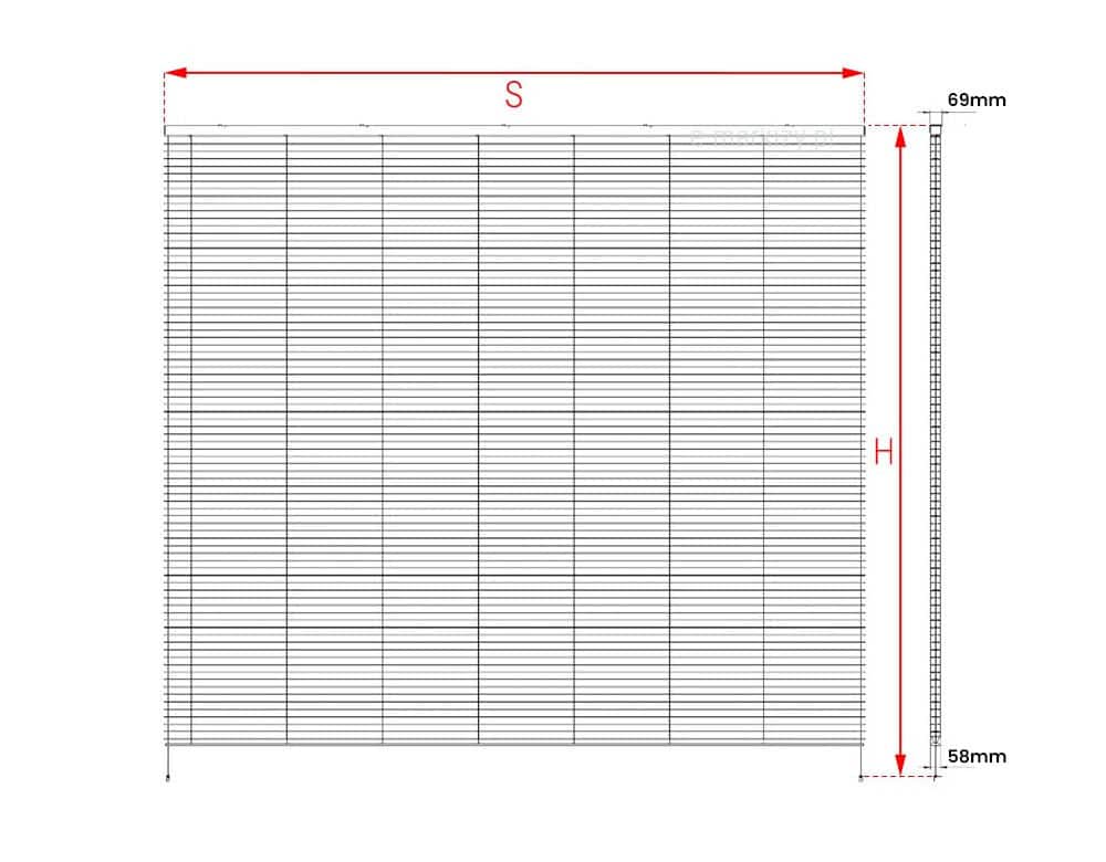 Określając wymiary żaluzji fasadowych, podajemy zawsze jej zewnętrzne skrajne wartości, czyli szerokość S i wysokość H.
