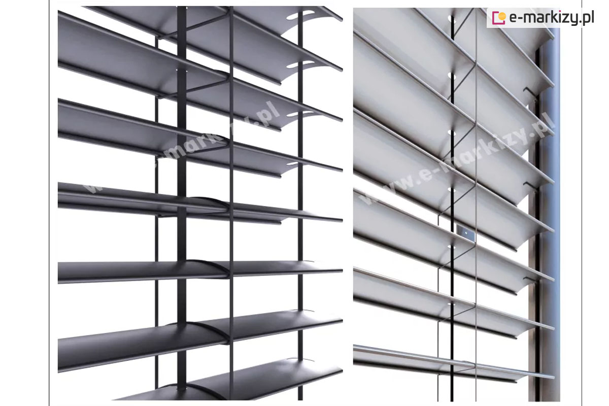 Lamele w kształcie litery C zapewniają dodatkową wytrzymałość, a płynne sterowanie kątem pochyłu lameli umożliwia swobodną regulację natężenia światła.