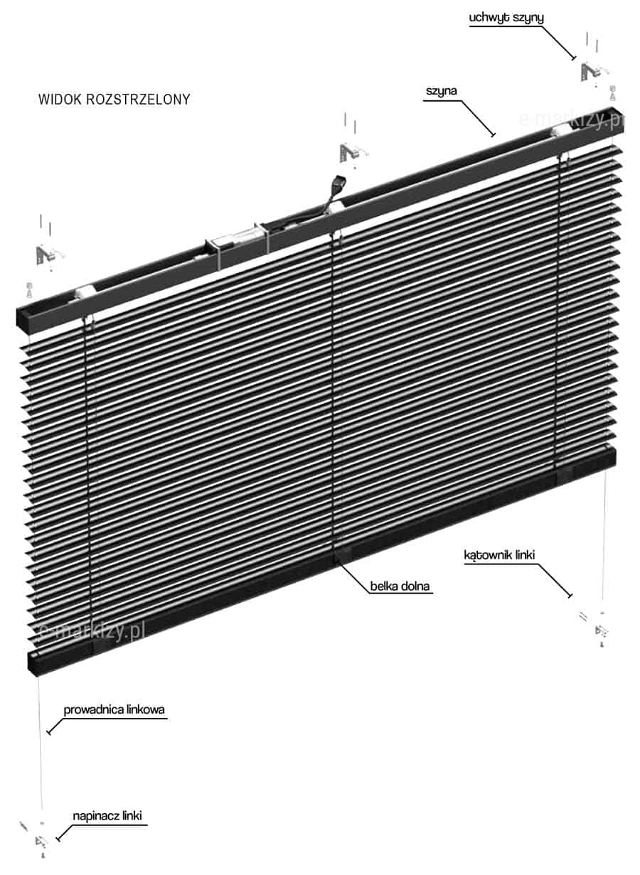 Żaluzje Fasadowe C50 Slim – Dane Techniczne - C50 Slim Dane Techniczne, C50 Selt dane techniczne, Żaluzja c50 slim komponenty, uchwyt szyny, szyna żaluzji, kątownik linki, belka dolna, prowadnice linkowe, napinacz linki, Żaluzja fasadowa c50 slim profile, profil pióra, profil belki dolnej, zaślepka belki dolnej, Żaluzja fasadowa c50 slim uchwyt mocujący linkę żaluzyjną, Żaluzja fasadowa c50 slim uchwyt sprężysty, Żaluzja fasadowa c50 slim uchwyty szyny głównej, twist szyny głównej