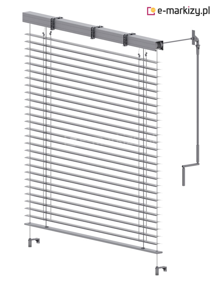 - Standardowo żaluzja wyposażona jest w napęd ręczny, sterowany korbą (bez dopłaty)