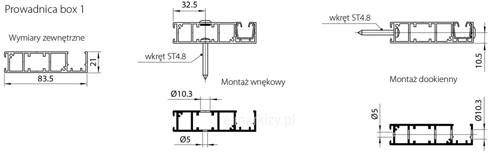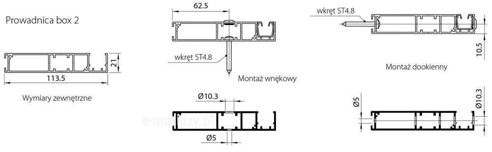 1. Box 1 (bez miejsca na docieplenie, węższa prowadnica)