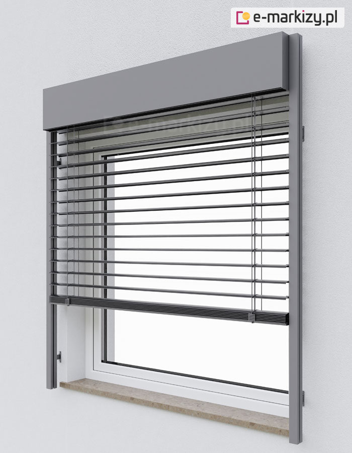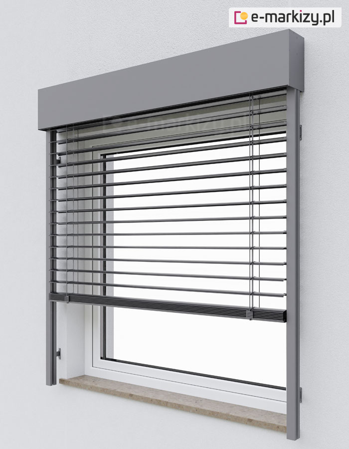 - Standardowo żaluzja wyposażona jest w napęd elektryczny, za dopłatą żaluzję możemy doposażyć w silnik elektryczny, który automatycznie zwija żaluzję i rusza lamelami.
